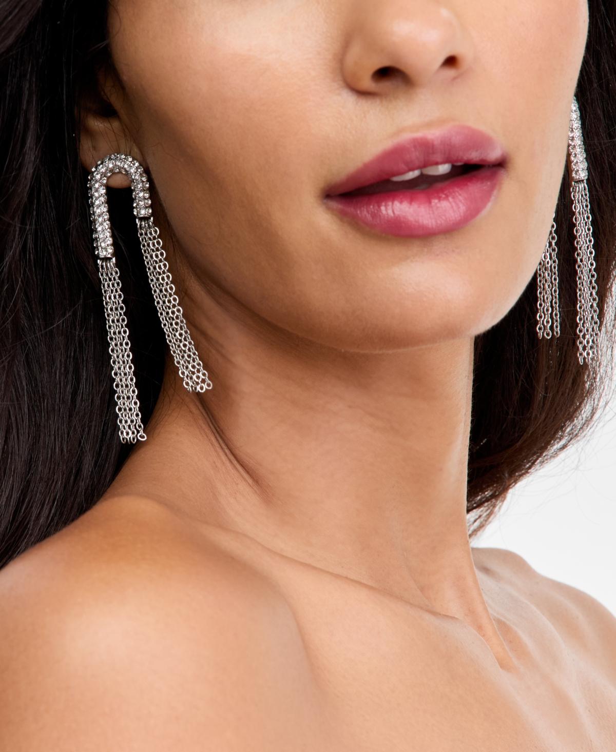 I.n.c. International Concepts Crystal & Chain Fringe U-Shaped Statement Earrings, Macy's Exclusive - Rhodium/crystal