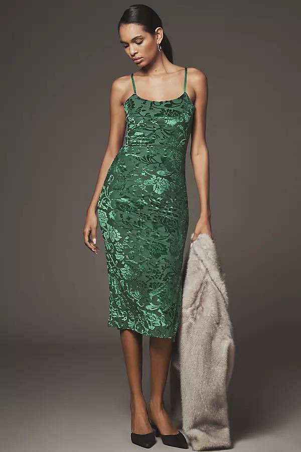 70% polyester, 20% rayon, 10% elastane; 95% polyester, 5% elastane lining Adjustable spaghetti straps Scoop neck Side slit Pullover styling Hand wash Imported Sleeveless Floral Slim Midi Dress by Endless Rose in Green, Women's, Size: Largearge, Polyester/Rayon/Elastane at Anthropologie