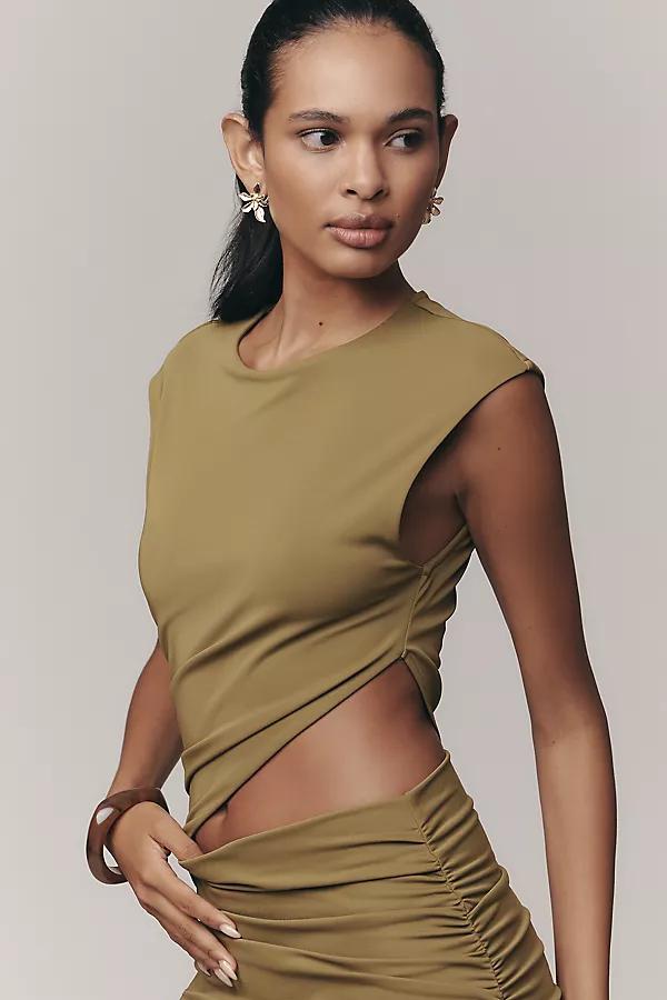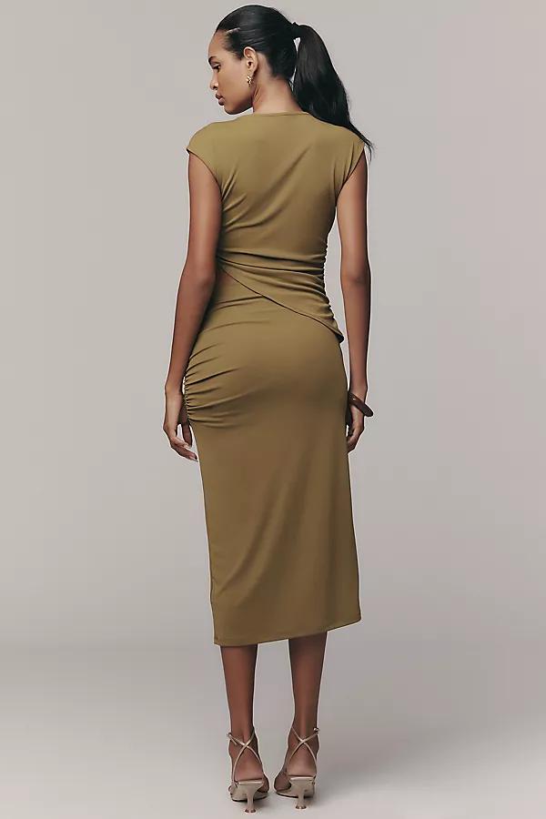96% polyester, 4% elastane Asymmetric draped detailing Side cutout Pullover styling Hand wash Imported Sleeveless Cutout Knit Midi Dress by Anthropologie in Green, Women's, Size: 2XS, Polyester/Elastane
