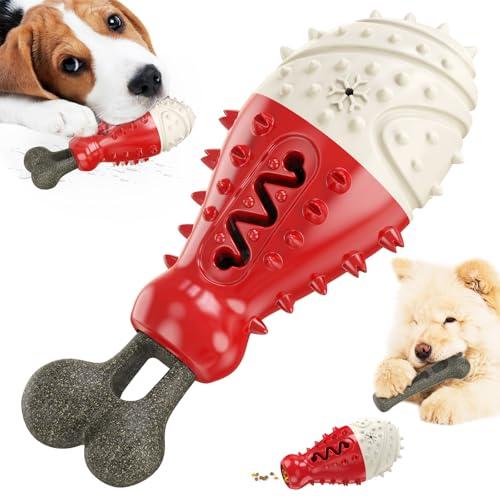 Dog Enrichment Toys, Puppy Teething Chew Toys with Coffee Wood Bone, Food Dispensing, Cooling Features, Tough for Small to Medium Breeds (Chicken Drumstick)