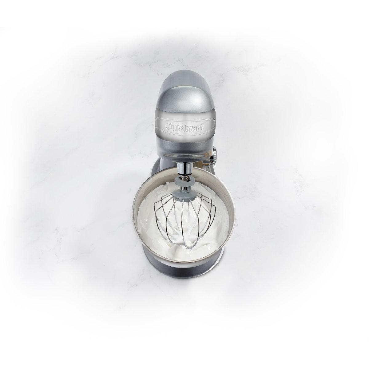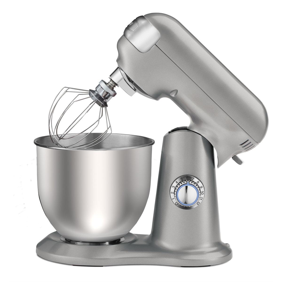 The Cuisinart precision master stand mixer features a 300-watt motor, die-cast metal construction, and 12-speeds that allow for nuance and excellence in performing a variety of preparation tasks. The unit's tilt-back head allows for easy access to its 4.5 quarts (4.25 L) stainless steel bowl. Also included are the following: Chef's whisk, dough hook, and flat mixing paddle. Additionally, you can purchase a variety of attachments for the unit: a pasta roller and cutter, pasta extruder, meat grinder, and spiralizer. Cuisinart Colour: Silver