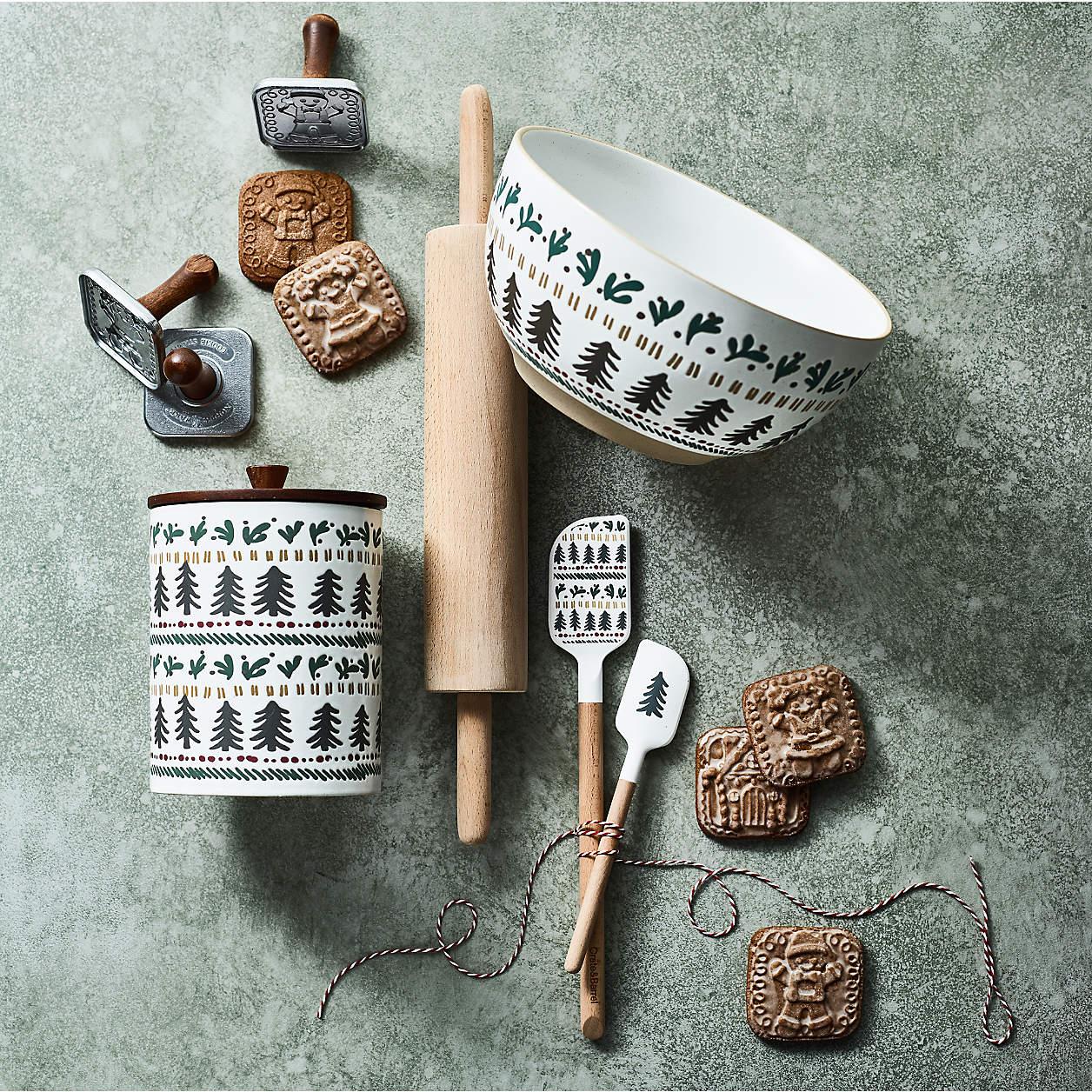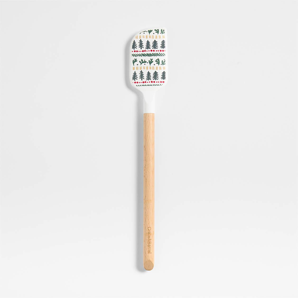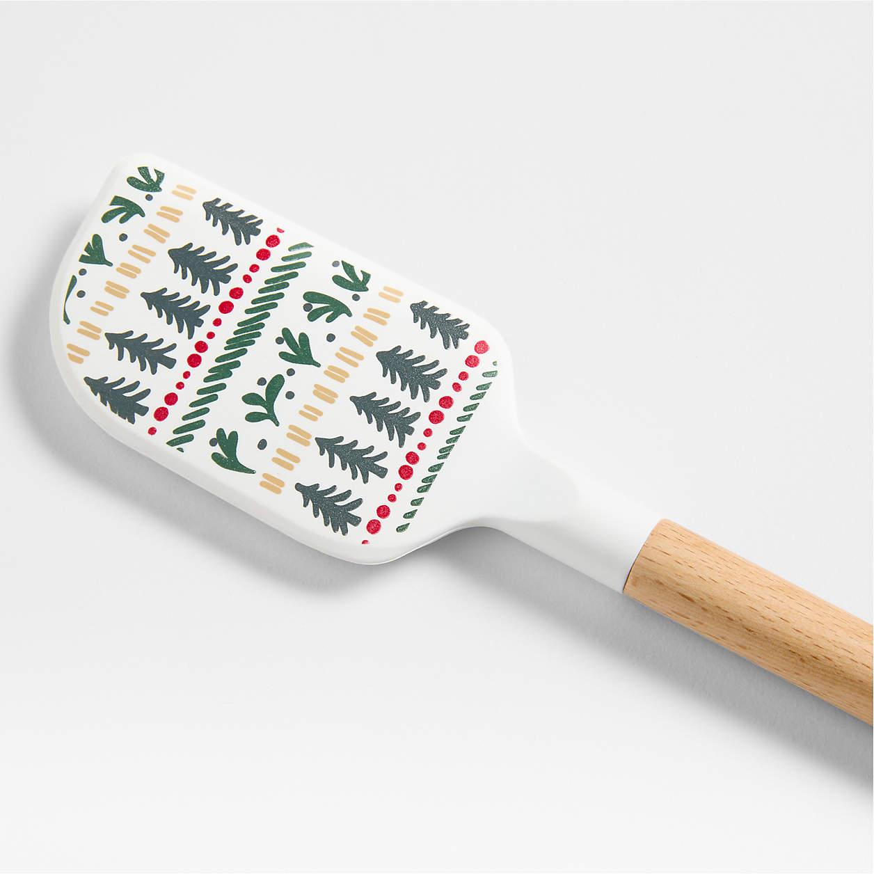 Our seasonal spatula arranges wintry icons in a festive Fair Isle pattern. Rows of mistletoe sprigs, holly berries, evergreens and more are printed in shades of red, green and gold on snow-white silicone. The spatula stands up to high heat for worry-free stirring and scraping, and the sustainably sourced beechwood handle provides organic warmth and a sturdy grip. Perfect for making eggnog, sticky toffee pudding and candy-cane fudge, the spatula also makes a useful stocking stuffer for your favorite baker.