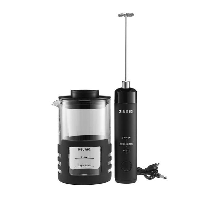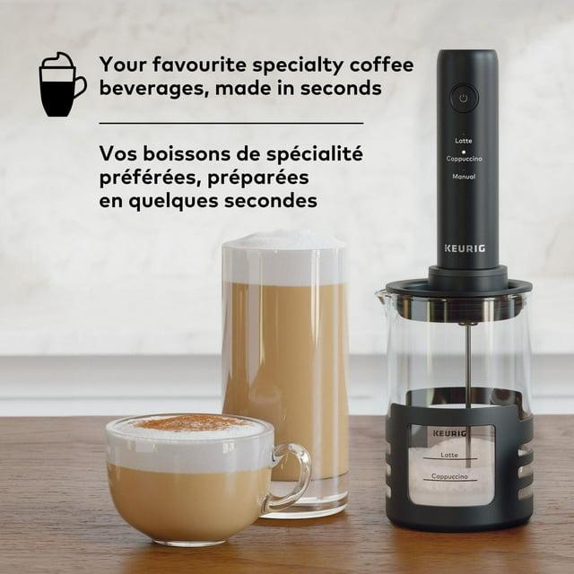 The Keurig® SimpleCafé Frother makes it easy for anyone to create café-style lattes, cappuccinos, and other specialty coffee beverages right at home. This hands-free frother whips up cold or warm milk into a silky froth that makes for delicious iced or hot coffee creations. It comes with a microwave-safe frothing cup with measurement lines to get perfect results every time.