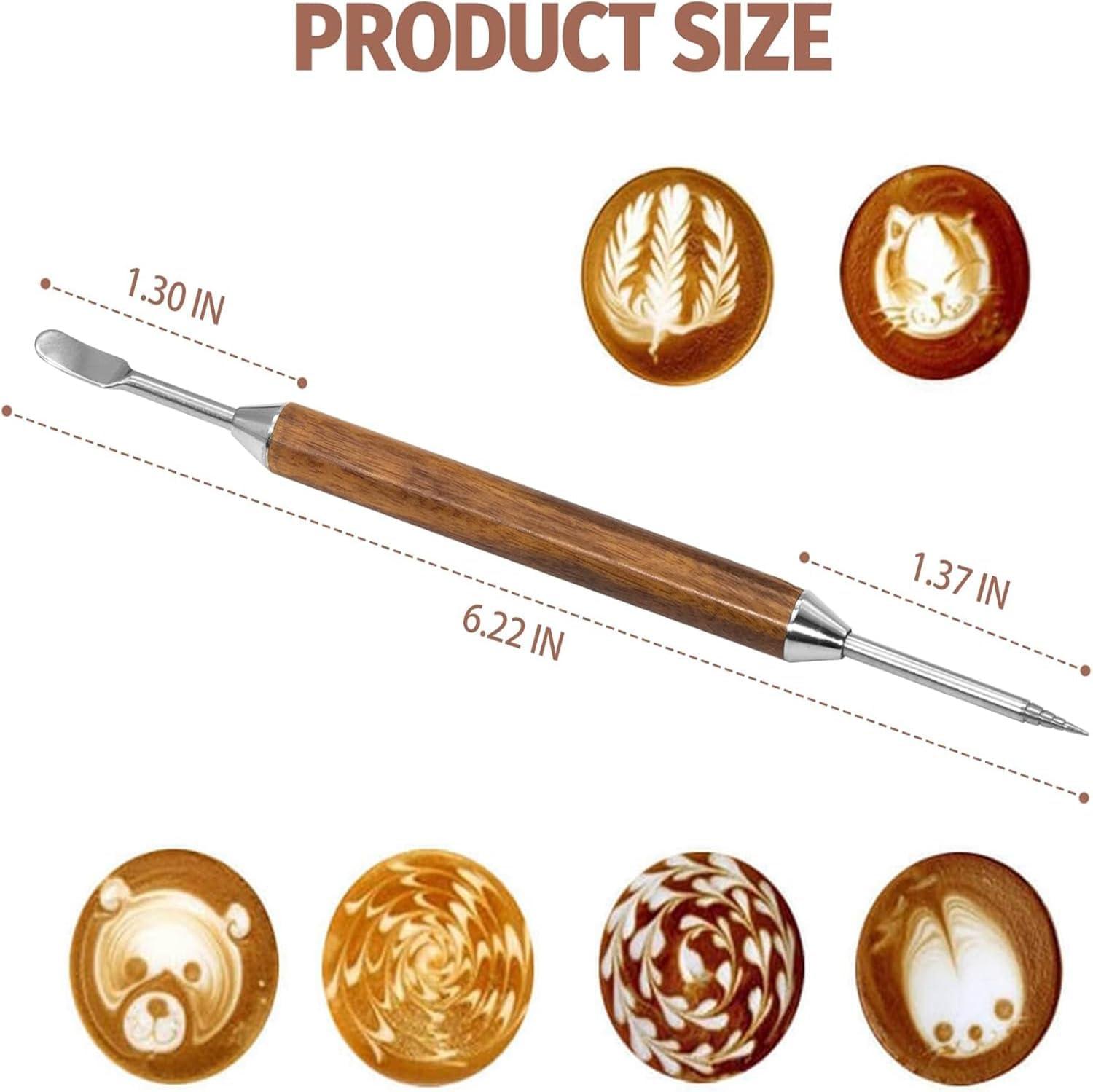 2-Pack Latte Art Pen Set, Stainless Steel Coffee Drawing Tool with Wood Handle