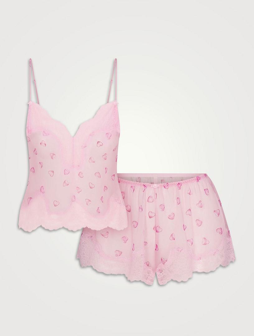 Sweet, sweet, almost-nothings. Show off your sexy side with SKIMS' 100% silk chiffon cami and shorts set. They’ve paired a flirty, flowy cropped lace cami with a matching sultry short that’s as light as a snowflake and ready to turn up the holiday heat.