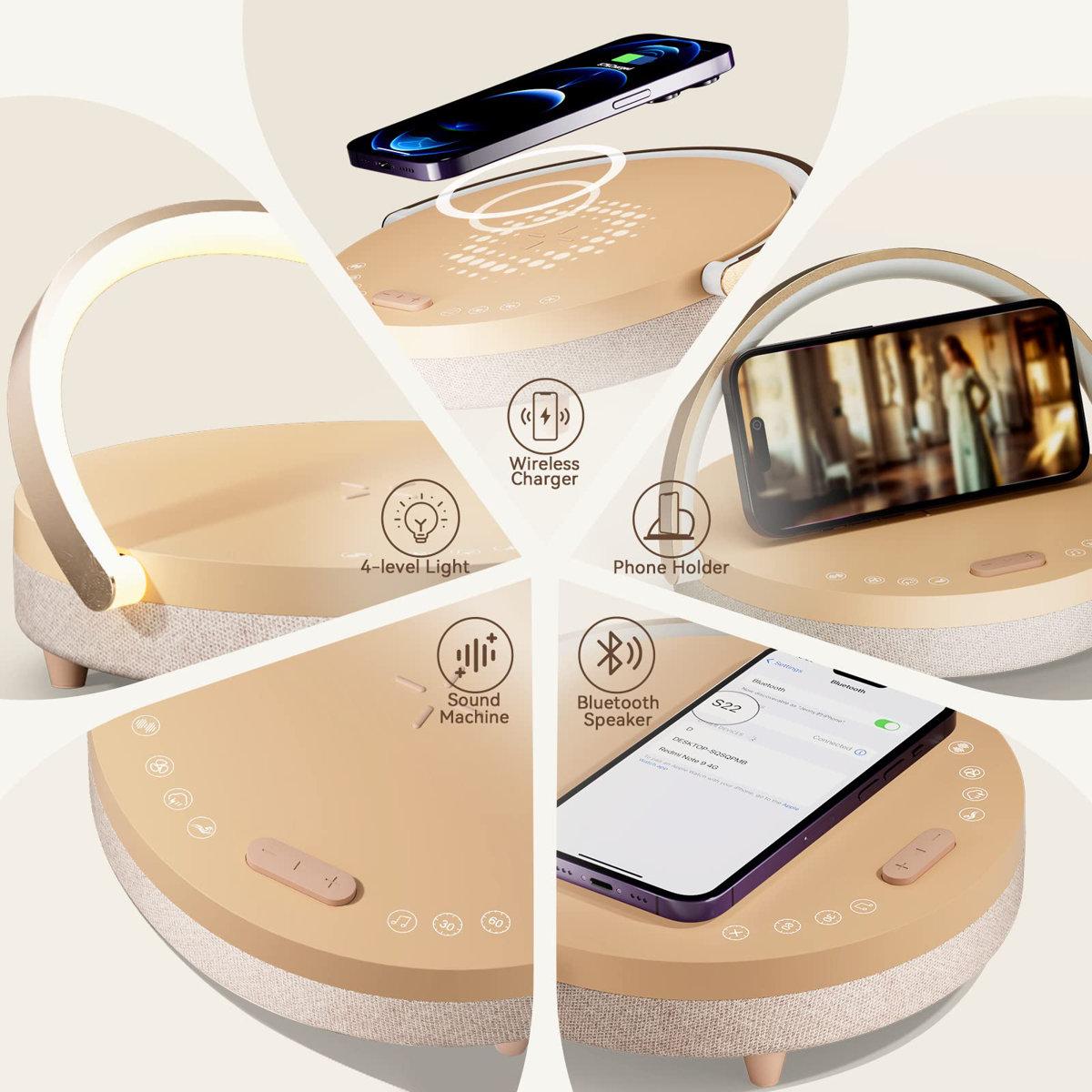 This multi-functional bedside lamp is the ultimate gift for women who appreciate both style and practicality. Combining five incredible features into one sleek design, it offers a wireless charging station, allowing you to easily charge your phone without the need for messy cords. Simply place your device on the lamp's centre for effortless charging, and there’s also a USB port for additional charging options.The built-in Bluetooth speaker provides high-quality sound for your favourite music, podcasts, or audiobooks, and connects easily via Bluetooth. With a range of up to 33 feet, you can enjoy your music or make calls from a distance.For a peaceful night’s sleep, the lamp features a white noise machine with various soothing sounds, including white noise, fan sounds, wave sounds, sleep-aid music, and rain sounds, creating the perfect ambiance for rest and relaxation. It’s ideal for blocking out distractions and helping you unwind after a long day.The dimmable touch lamp offers three adjustable brightness levels (30%, 70%, 100%), making it perfect for different activities such as reading, working, or winding down before bed. You can easily adjust the light with a simple touch anywhere on the lamp’s surface.Additionally, the lamp includes a 180° adjustable phone holder that allows you to position your phone, tablet, or e-reader at the perfect angle for watching movies or playing music. It’s the perfect combination of practicality and convenience.With its elegant rosy beige colour, this bedside lamp is a thoughtful and stylish gift for any woman. Whether for a birthday, anniversary, or special occasion, this 5-in-1 lamp will elevate any bedroom or living space, adding a touch of luxury and functionality. Ivy Bronx Base Finish: Beige