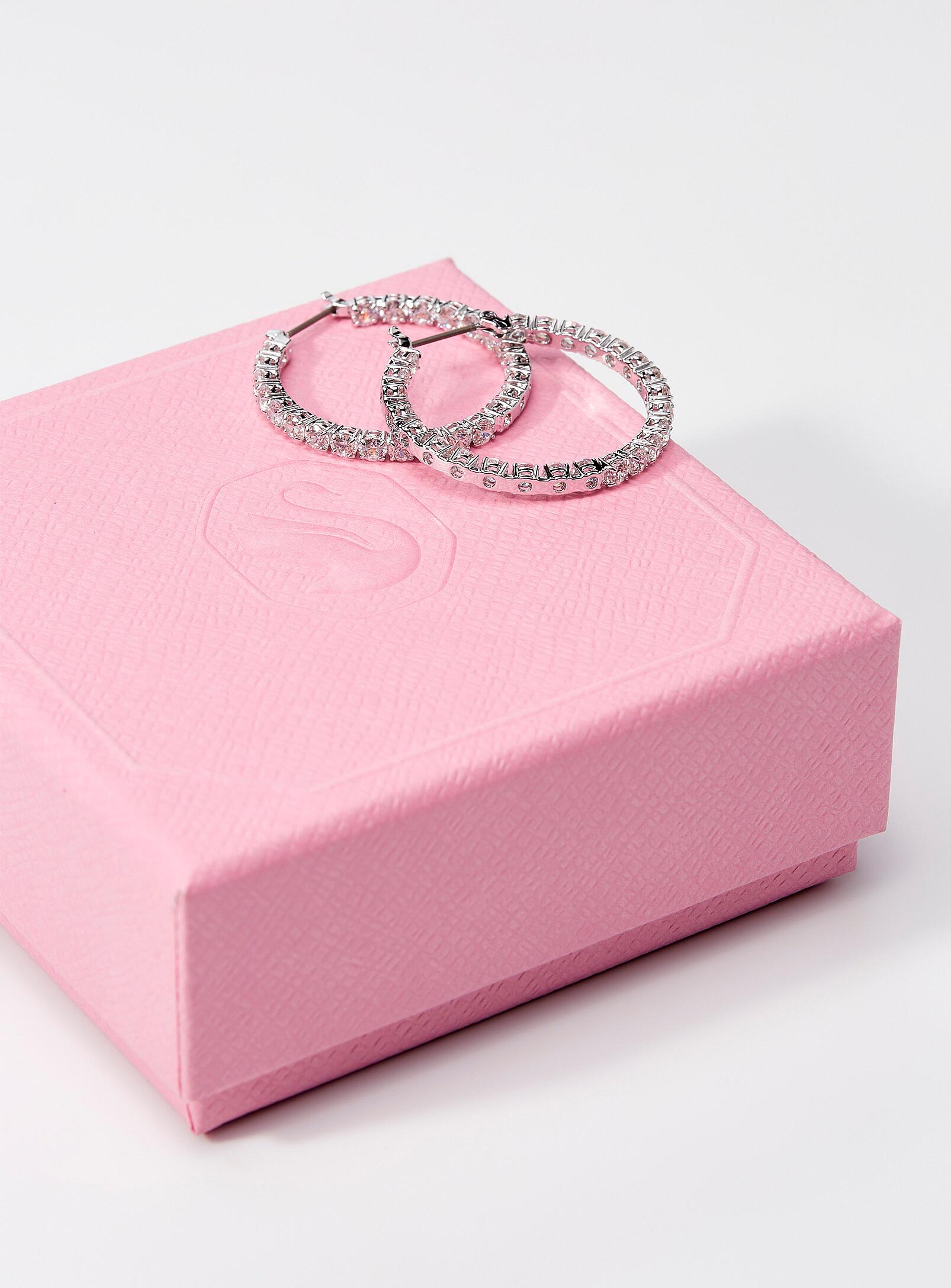Swarovski - Matrix hoops Swarovski Swarovski has become the world's leading brand of cut crystal jewellery and accessories thanks to its founder's undeniable know-how. Since 1895, this expertise has permeated every stage of the label's creative process, from the first drafts to final assembly. All the pieces tell a story and embody more than 125 years of artistic mastery. To this day, the family keeps this tradition alive of offering women around the world with fabulous style every day. These sparkling hoops will add some pop to any outfit! Swarovski crystals Rhodium metal Post and hook clasp for pierced ears Signature storage case included Dimension: Diameter: 2.5 cm.