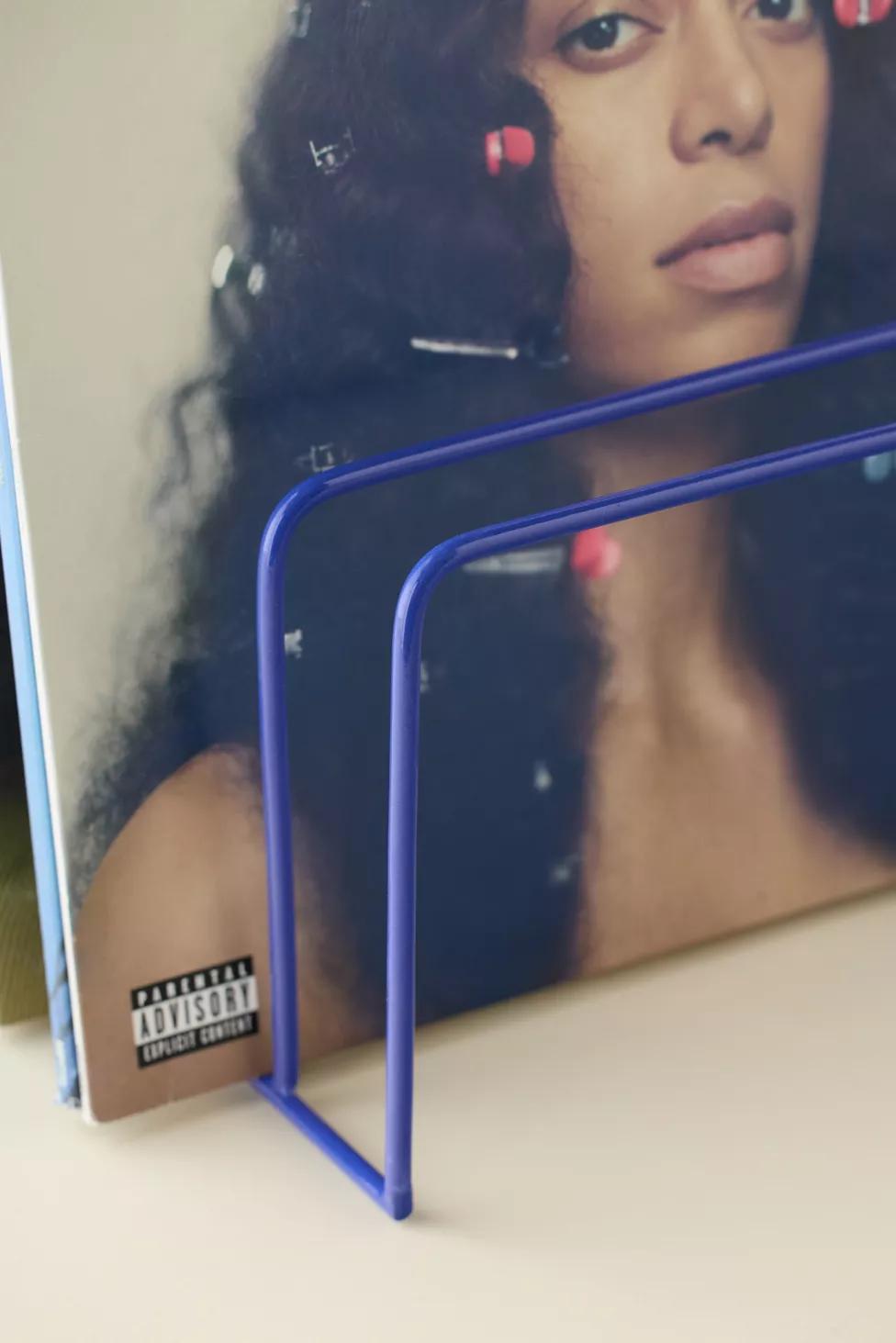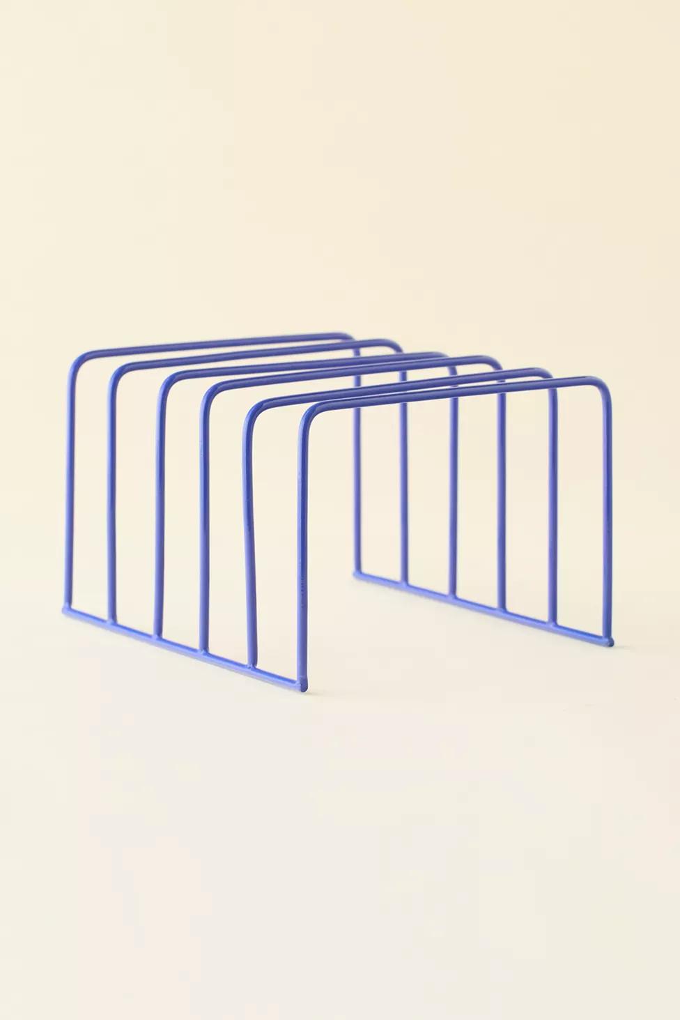 Keep your vinyl library organized with this iron vinyl storage rack. This essential tabletop storage rack features a slatted silhouette that’s perfect for storing your vinyl, magazines, folders and more. Available exclusively at Urban Outfitters.