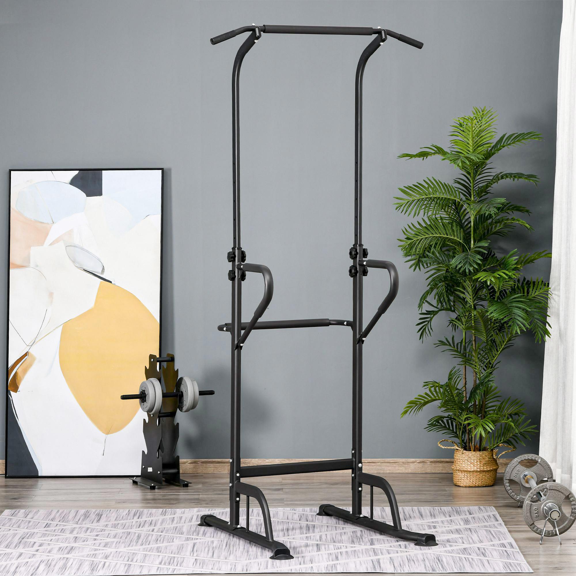 This multi-function power rack from Soozier is your new favourite workout partner. Can be used for working on the biceps, triceps, back, abdominal core, legs and shoulders - a full body focus. The dip bar height is adjustable for safety and to help utilize this equipment as effectively as possible. It's made from steel so it's tough and weight supportive up to 264 lbs (120 kg), finished with foot pads to protect your floor.