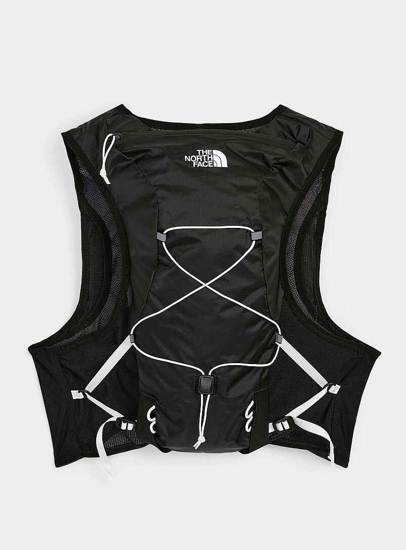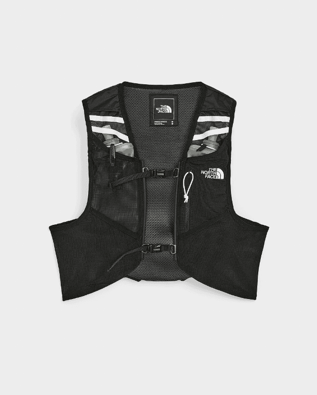 The North Face at I.FIV5 Strategically stretchy and padded design that ensures minimal bounce for runners' comfort 2 water bottle pockets, 2 side pockets, 1 zipped phone pocket 6-litre zip bag with elastic lacing and barrel drawstrings Chest strap with safety whistle Reflective details to keep you safe and visible in the dark