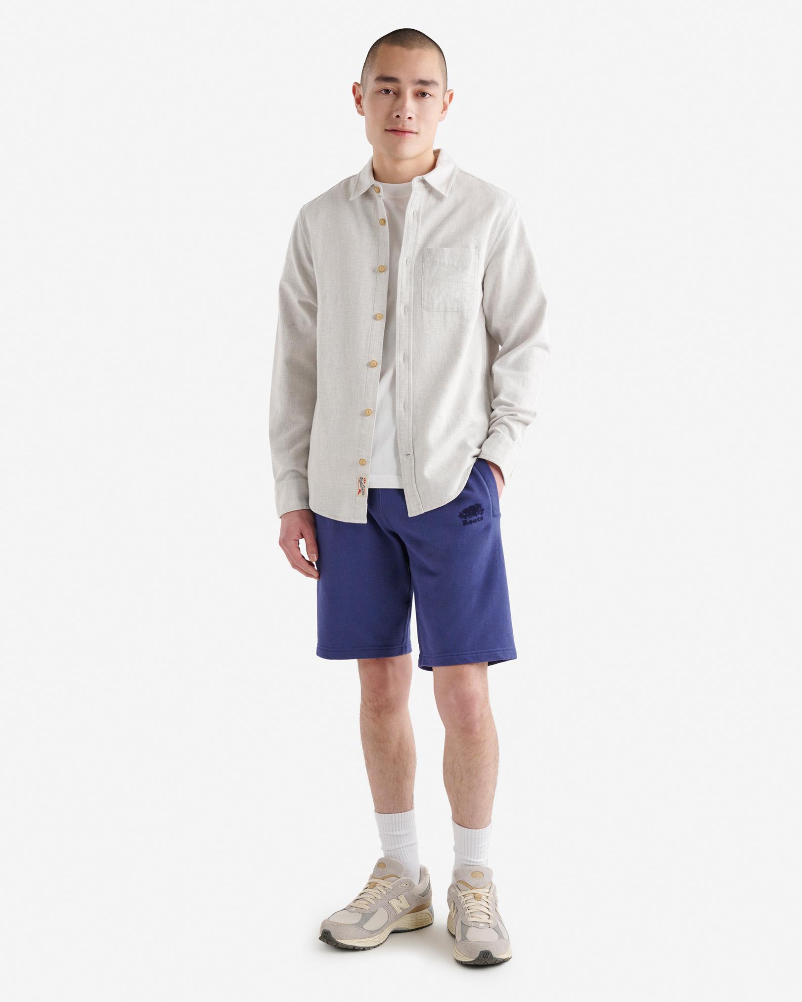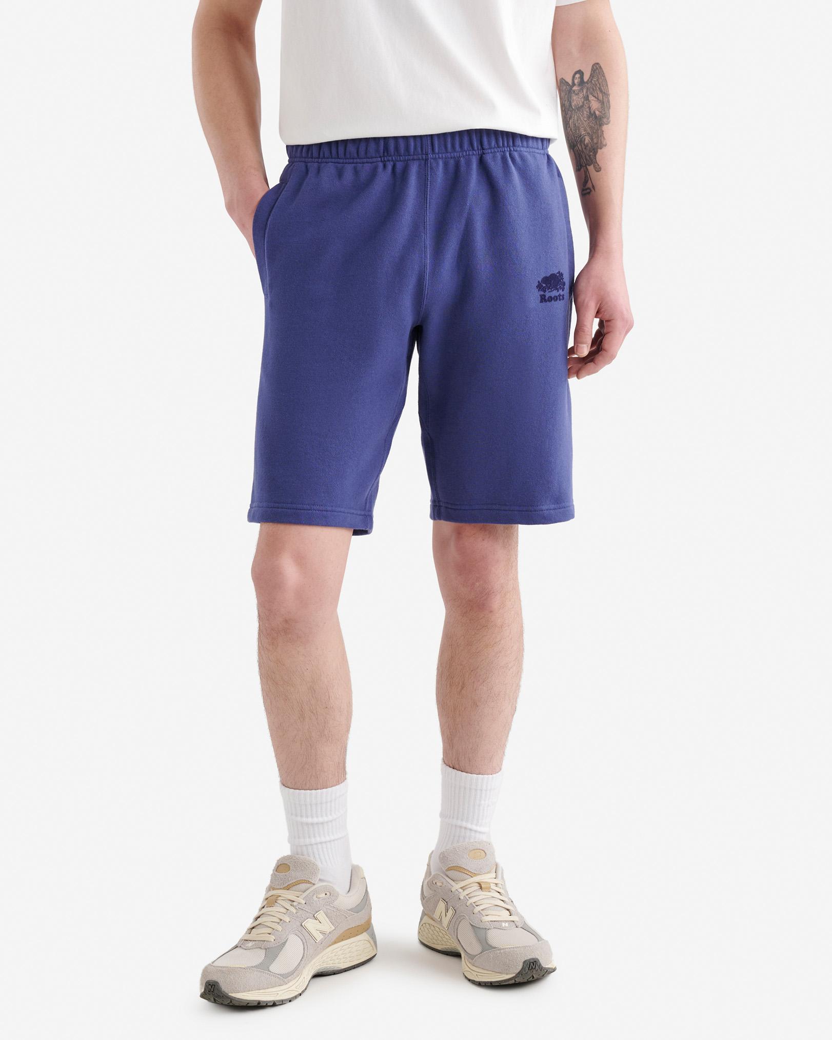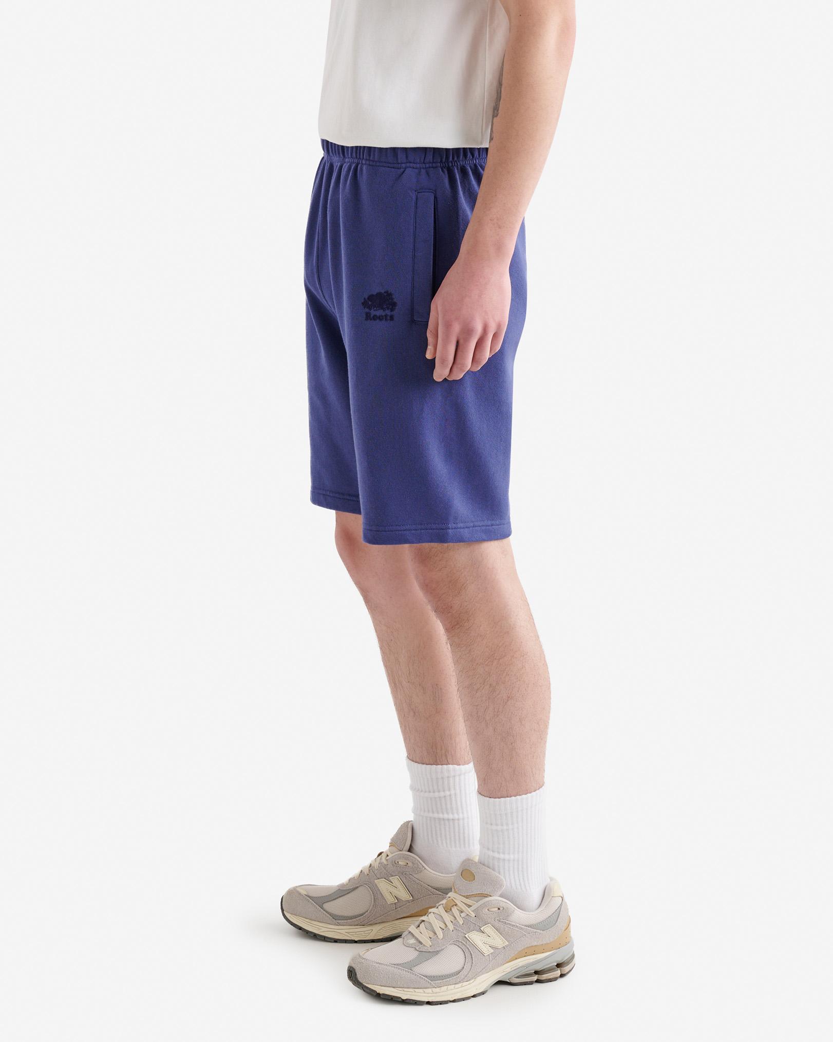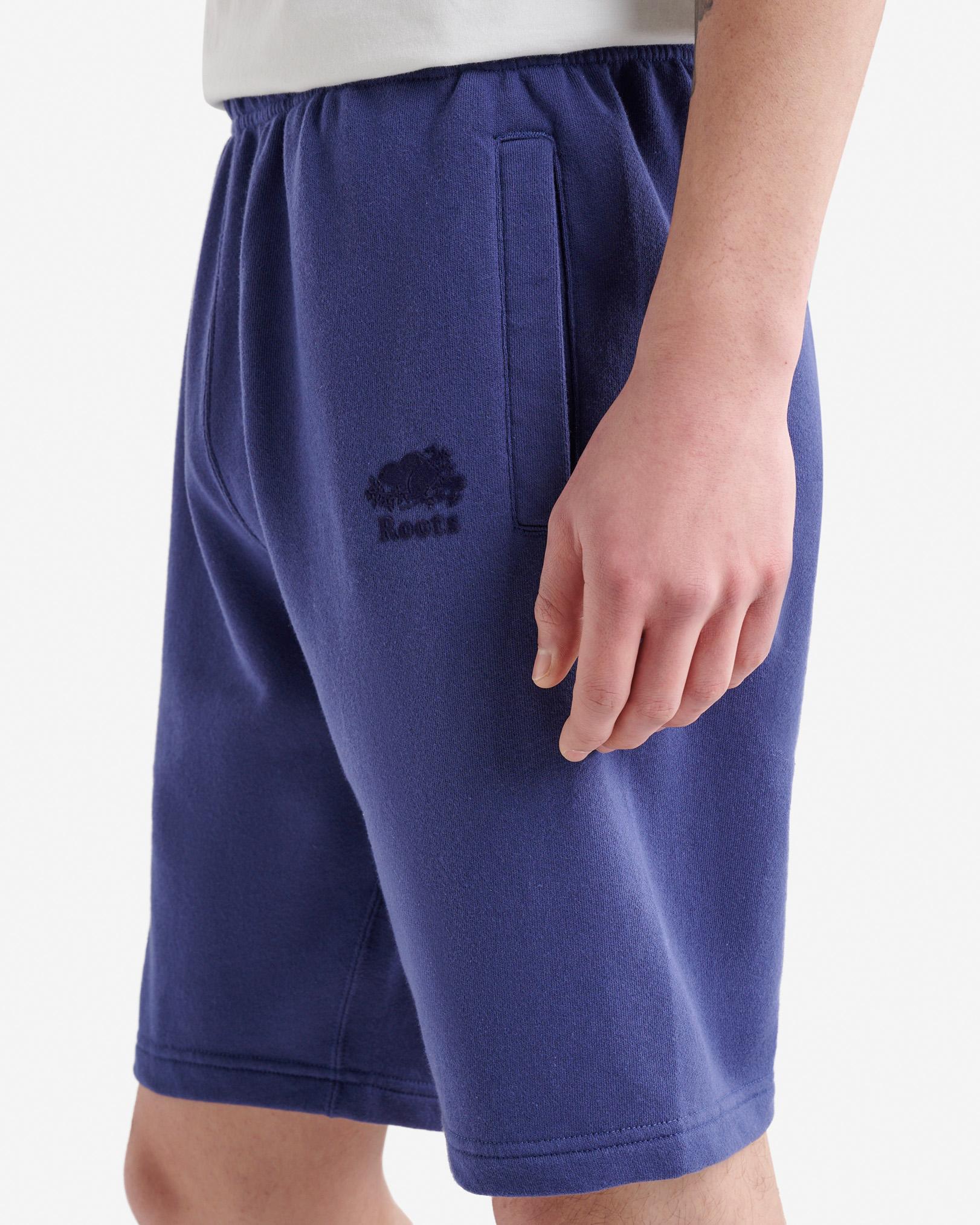 Stay cool, but comfy in our classic Organic Original Sweatshort. Designed with thoughtful details like welt pockets and an elasticated waistband for maximum coziness. Organic cotton and recycled fibres French terry Classic fit Elasticated drawstring waistband Two front welt pockets Flocked logo at front left ABOUT 80% organic cotton, 20% recycled polyester french terry SIZE & FIT The model is wearing a size medium Model Measurements: Height: 6'1 Chest: 39 Waist: 32 ; suit size: 40-R; neck: 15.5 ; sleeve: 34.5 Inseams: XXS:10 ,S: 10.5 ,M: 10.5 ,L: 10.5 ,XL: 11 ,XXL: 11 ,3X: 11.5 ,4X: 11.5 ,5X: 11.5 CLASSIC FIT Our Classic fit is made for comfort. Not too close to the body, but not too loose. LOOK AFTER ME Reverse garment before washing or ironing Machine wash cold, gentle cycle with like colours No bleach Tumble dry low - low iron Do not iron decoration Do not dry clean Roots Organic Original Sweatshort 10.5 Inch in Blue Eclipse