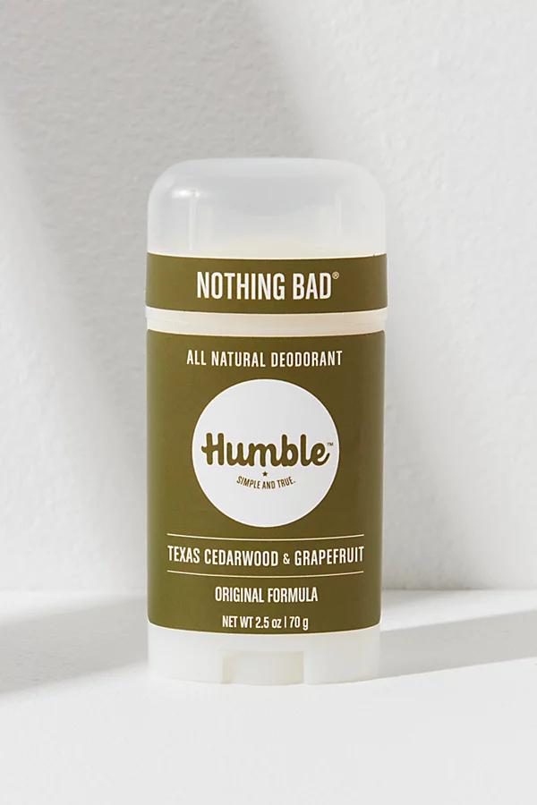 An aluminum and paraben free deodorant from Humble that keeps you dry and odor-free without the harmful additives that commercial deodorants have. Made with just four or five all-natural and organic ingredients, depending on the scent, this formula is manufactured in small batches in Tao, New Mexico. * 2.5 oz * No aluminum, alcohol, dyes, parabens or artificial bactericides * Cruelty-free * Palo Santo, Texas Cedarwood, Lavender scents **Ingredients:** Organic Cornstarch, Fractionated Coconut Oil, Organic Bees Wax, All-natural Baking Soda, Organic Essential Oil, *Vegan/Baking Soda-Free Formula*, Organic Candelilla Wax, Magnesium Hydroxide Humble Deodorant at Free People in Texas Cedarwood/Grapefruit