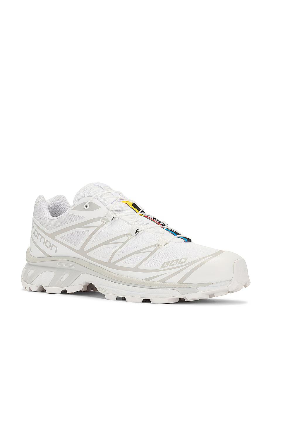 Salomon XT-6 in White Synthetic textile upper with rubber sole. Made in Cambodia. One pull tightening with Quicklace ™ closure. Abrasion resistant mesh. Breathable lining for extreme comfort. The outsole features a specific lug design and pattern for improved grip across all surfaces.. Salomon's 4D Advanced Chassis helps guide your feet through rough terrain, reducing fatigue on those long days that feel never ending.. SMOF-MZ12. L41252900. About the designer: