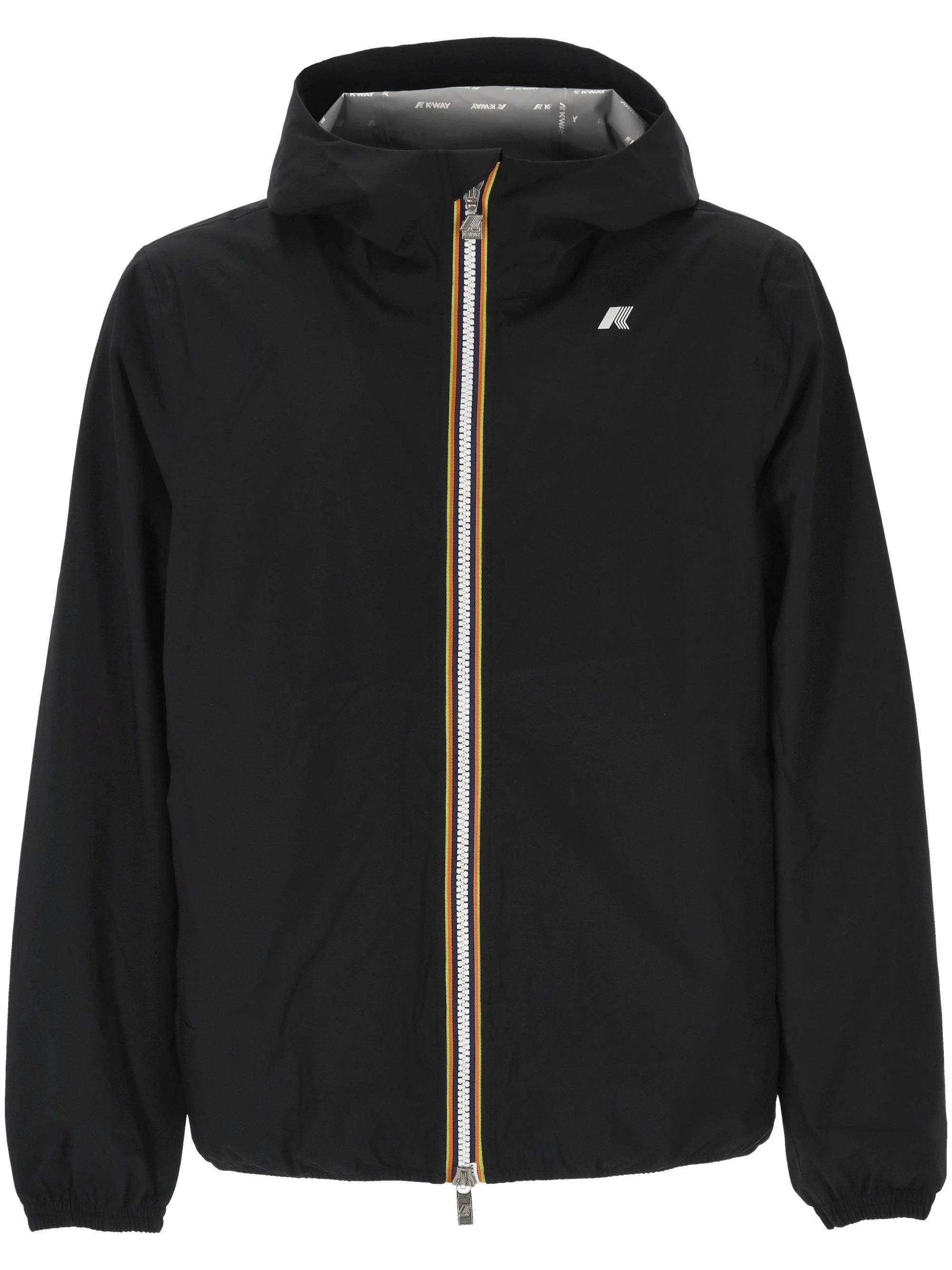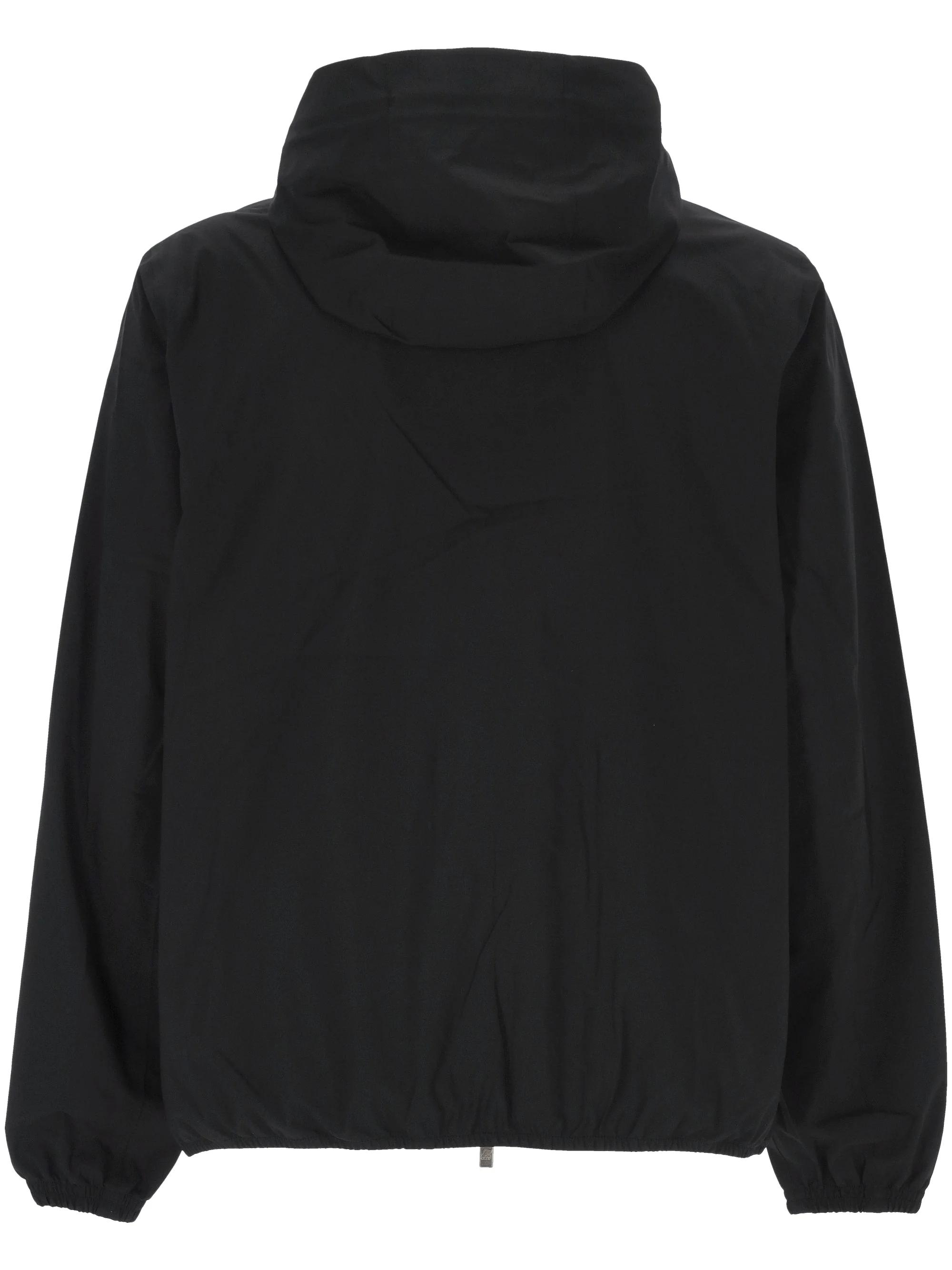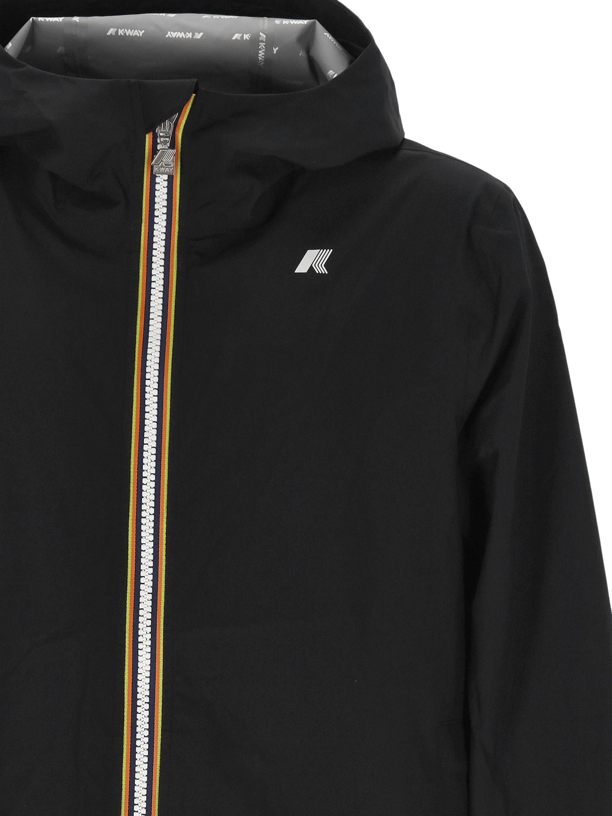This garment features a stretch polyester fabric that is waterproof, windproof, and breathable. It includes a durable water repellent treatment and offers water resistance up to a 10000 mm water column. The interior membrane is printed with the logo, and the seams are heat-taped for added protection. The hood is adjustable with drawstring stoppers, and the zip fastening ensures a secure fit. Elasticated cuffs and hem provide comfort, while two zipped pockets offer convenient storage. The slim fit design is complemented by a white printed logo.