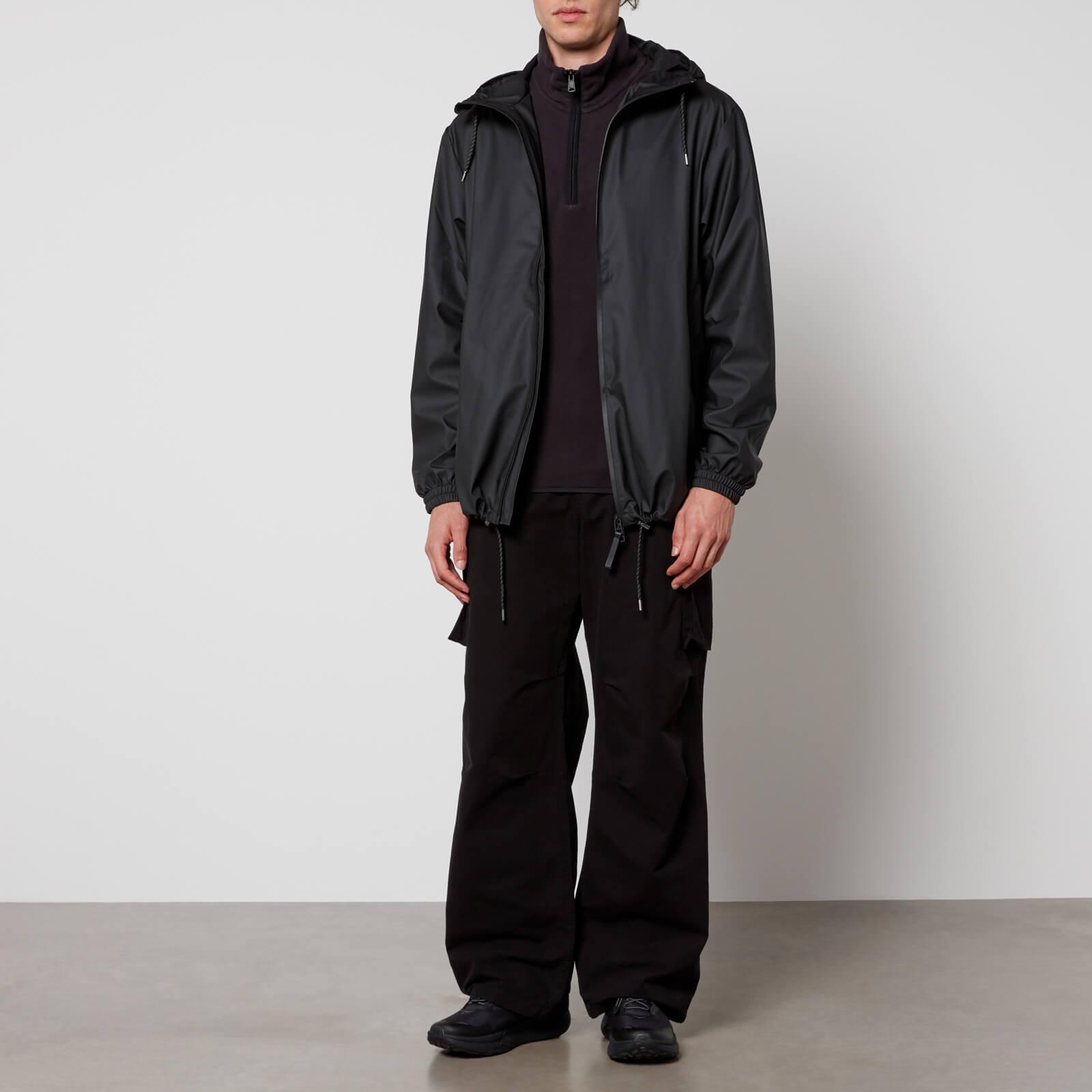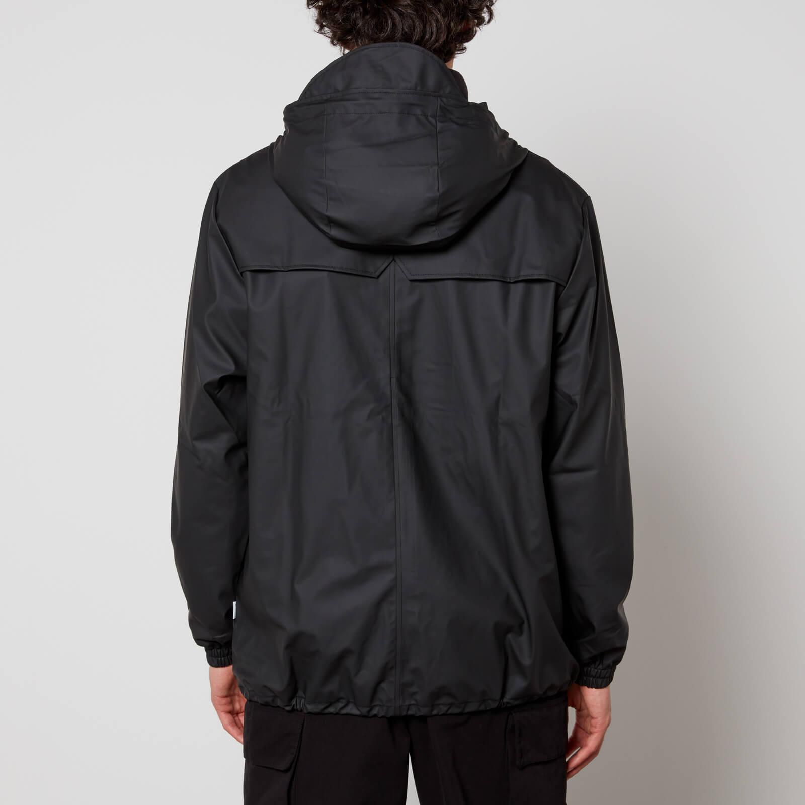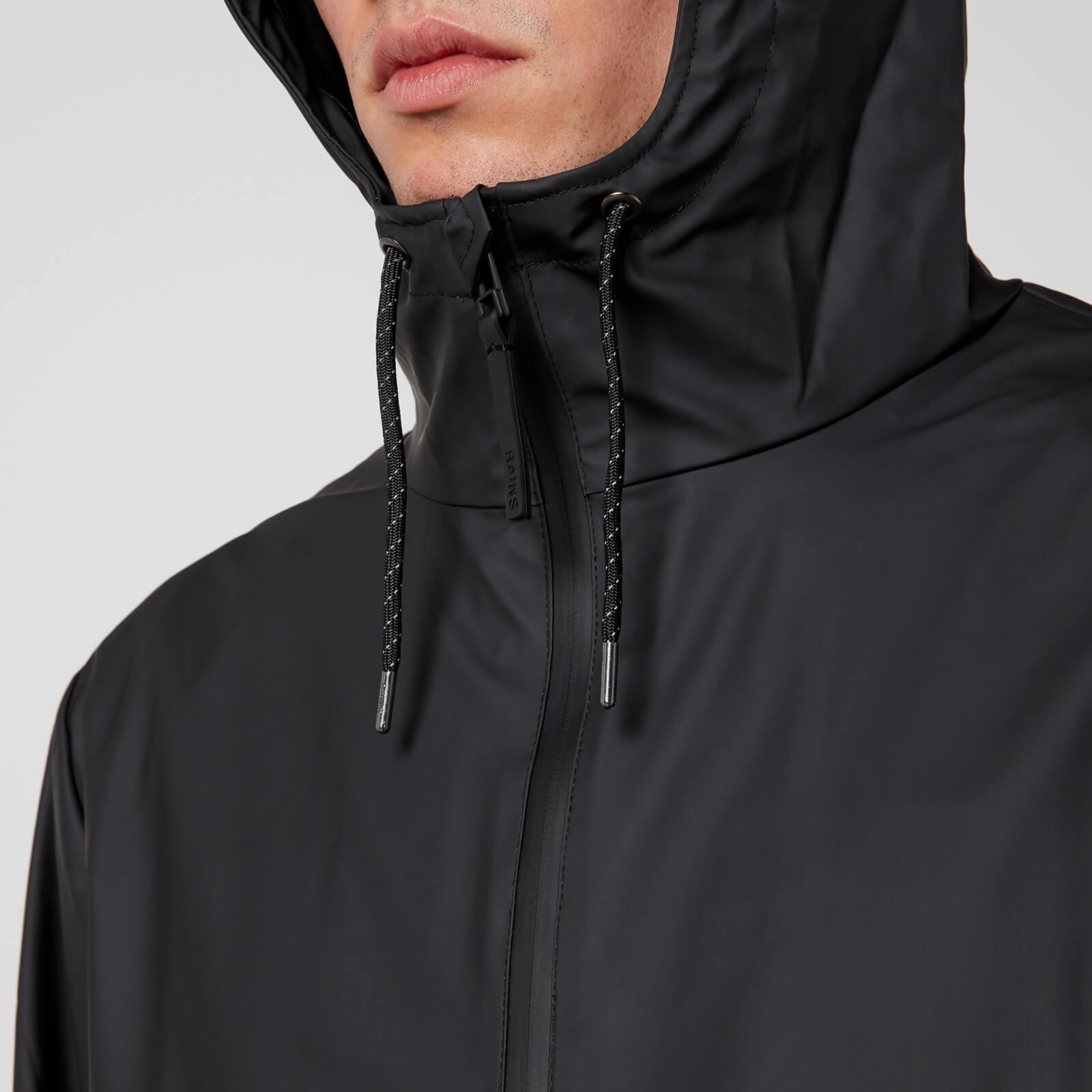 The Rains storm breaker jacket is a must-have for any wardrobe. This black waterproof coated-shell jacket ensures protection from the elements. It features a drawstring hood and hem, elasticated cuffs, and front welt pockets for added convenience.