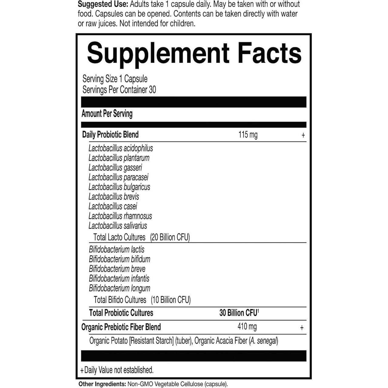 Life is full of ups and downs but with Garden of Life Dr. Formulated PROBIOTICS Once Daily you can keep your gut health on point! Packed with 50 billion CFU and 16 powerful probiotic strains each capsule is designed to promote digestive health and support your immune system. Say goodbye to bloating and hello to a happier tummy as these friendly bacteria help balance your gut flora and enhance nutrient absorption. Formulated with certified organic ingredients it’s not just good for you; it’s good for the planet too! Enjoy the confidence of a daily boost in gut health with a convenient one-capsule-a-day regimen that takes the complexity out of maintaining wellness. Benefits: High CFU Count: 50 billion live cultures per capsule for maximum effectiveness. Diverse Strains: 16 probiotic strains specifically chosen for optimal digestive support. Organic Ingredients: Made with certified organic non-GMO ingredients free from gluten and dairy. Convenience: Just one capsule a day to maintain healthy gut flora. How to Use: Dosage: Take one capsule daily preferably with a meal. Storage: Store in a cool dry place away from direct sunlight. Precautions: Read the ingredients list and instructions on the bottle and consult a healthcare professional before using this product especially if you are pregnant nursing taking other medications or have a pre-existing medical condition. Do not exceed the recommended dosage.