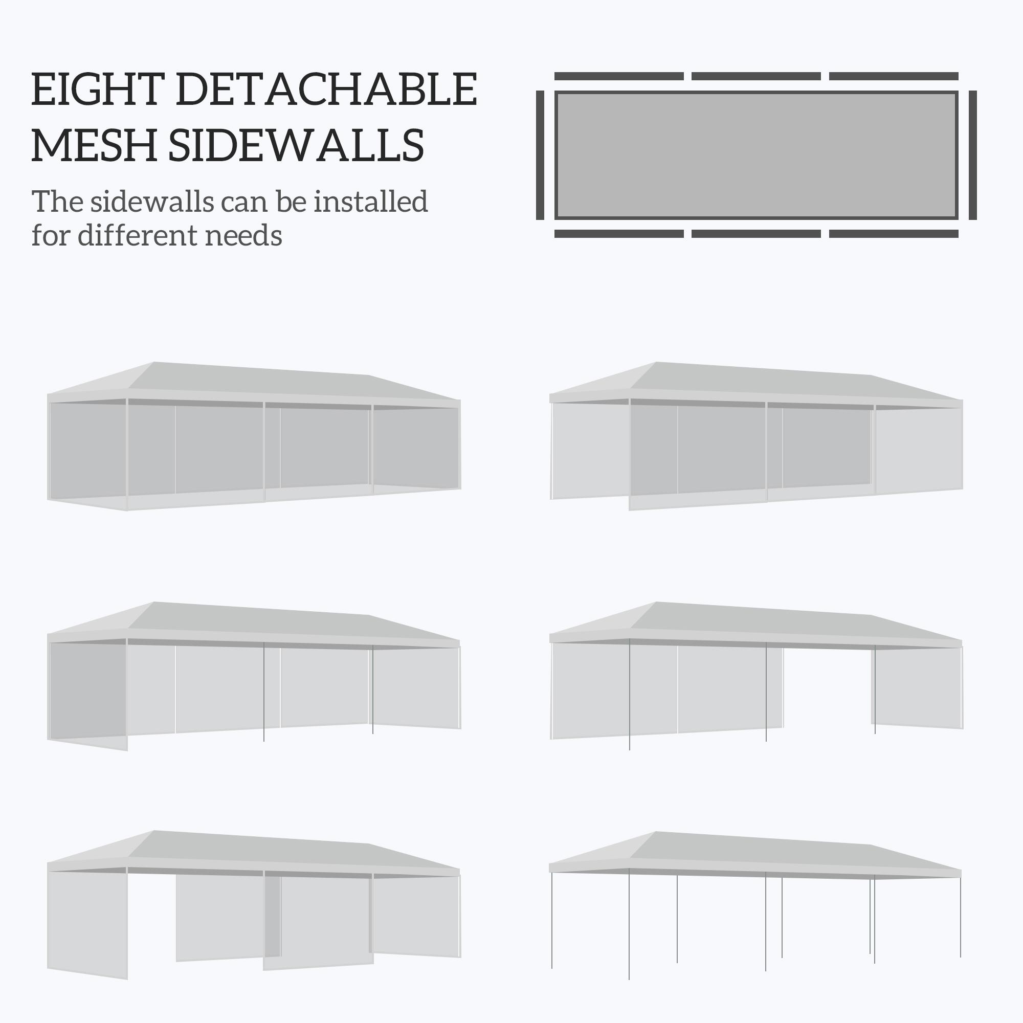 Outsunny 10' x 28' Gazebo Party Tent Outdoor Canopy Garden Sun Shade with 8 Mosquito Mesh Netting and Zipper Door, White | Aosom Canada