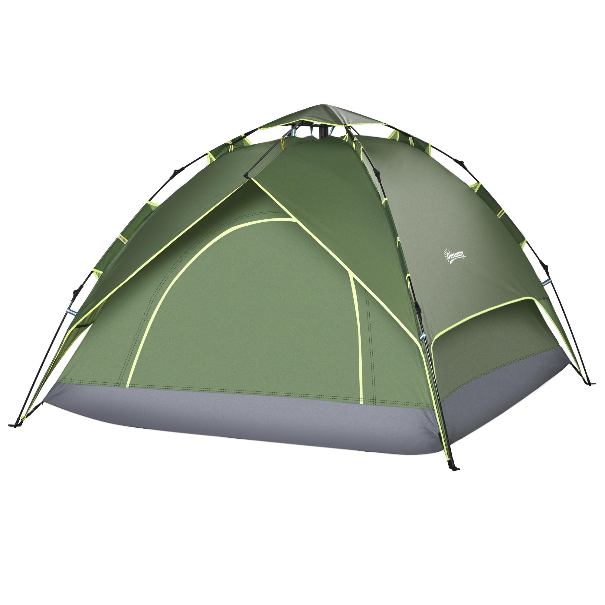 Outsunny Camping Tent, 3 Person Family Tent, 1000mm Waterproof, with Sewn-in Groundsheet and Carry Bag, for Fishing, Dark Green | Aosom Canada