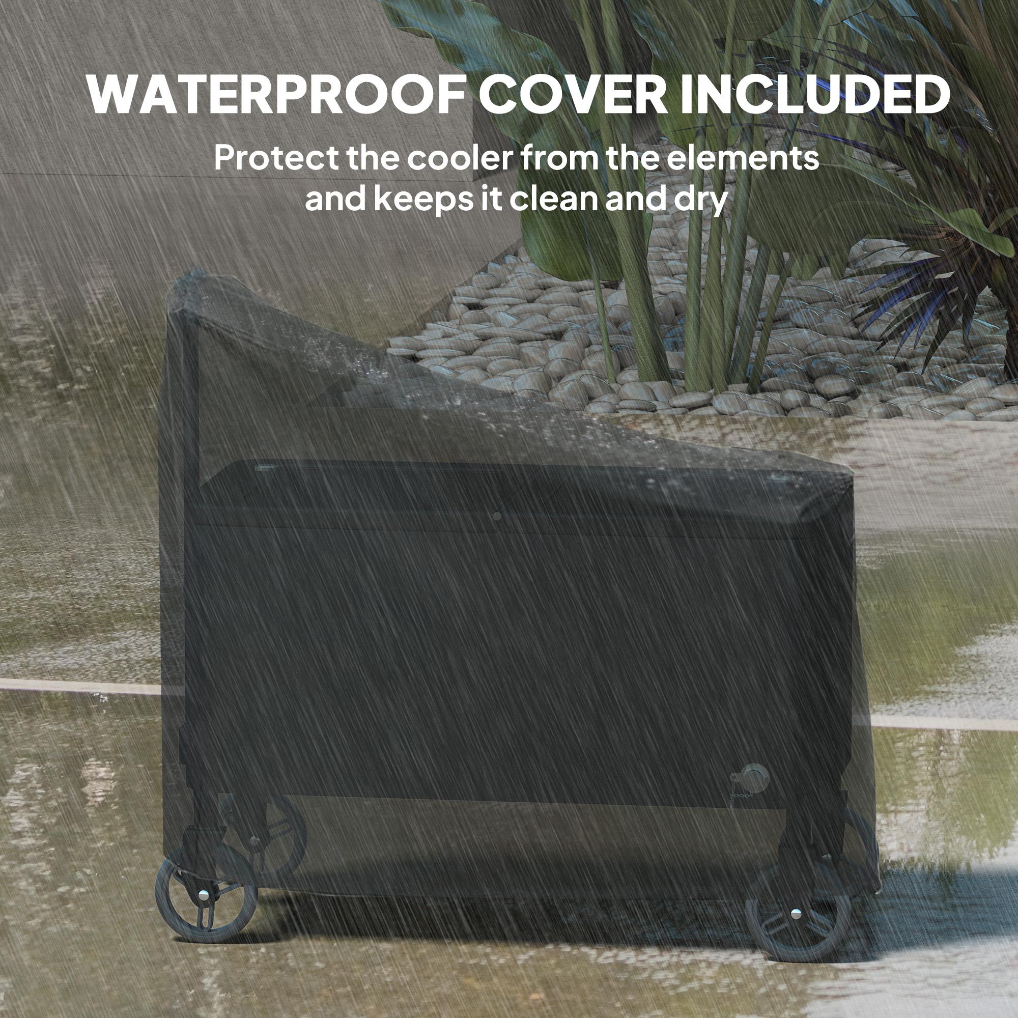 Keep your drinks chilled and your gatherings lively with the Outsunny outdoor cooler cart! With a large volume of 80 qt (76 L), a weather-resistant outer shell, and an inner box for insulation, this standing cooler keeps your beverages cool for longer periods. Featuring wheels, a built-in bottle opener with cap catcher, and a drain hole with plug, it's both stylish and practical. Suitable for barbecues, parties, and any outdoor events—elevate your hosting game today!