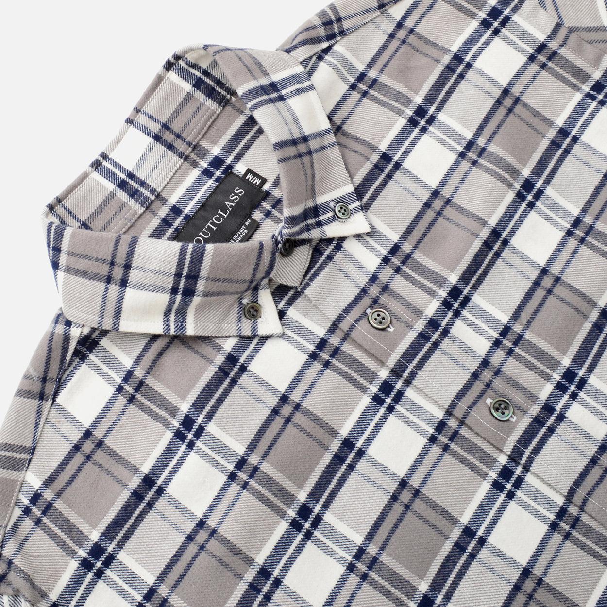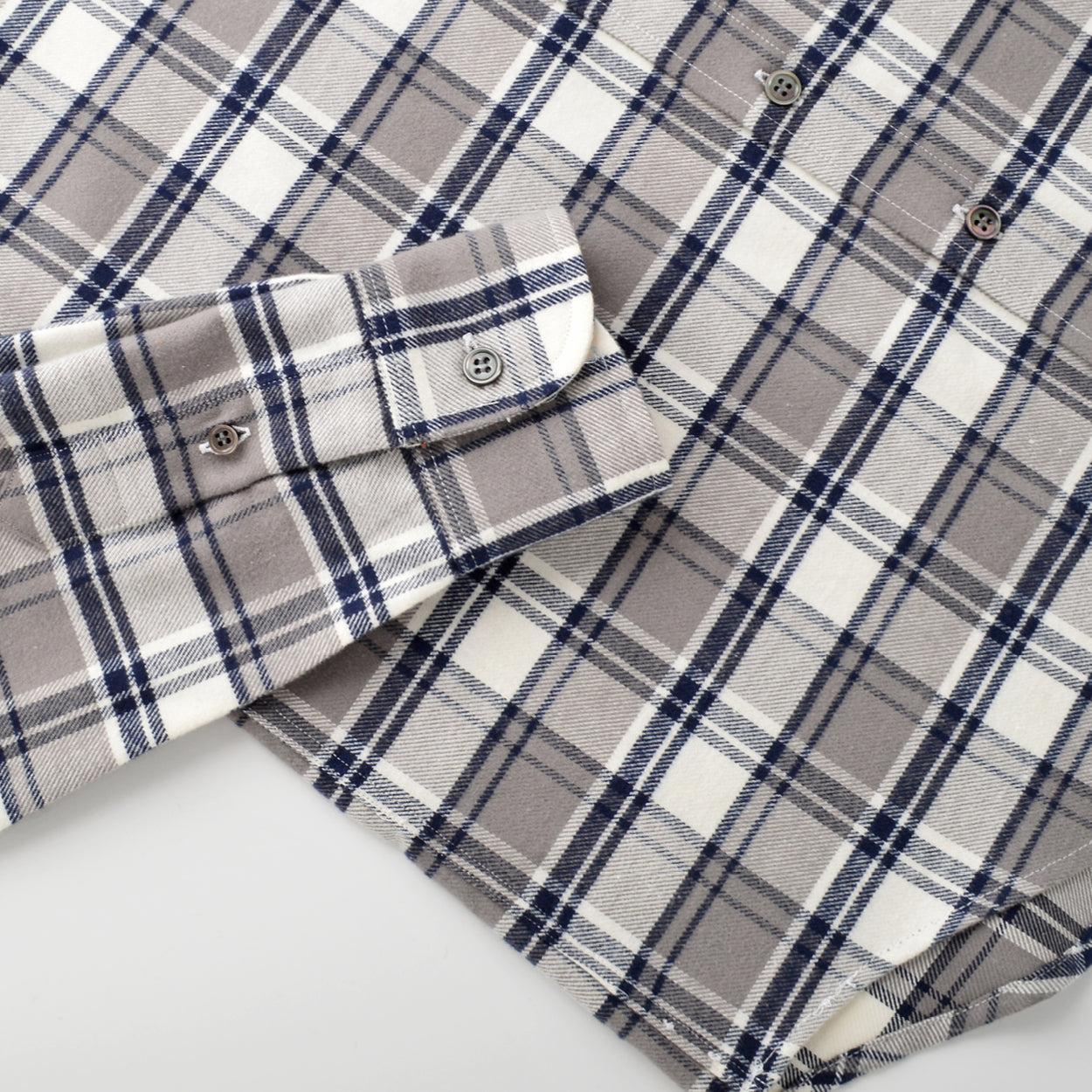 This Grey & Blue Plaid Flannel Shirt is finely crafted from a soft and comfortable flannel fabric featuring a classic plaid pattern. Its double-needle seams and button-down collar provide improved durability, and its grey mother of pearl buttons add a unique finishing touch