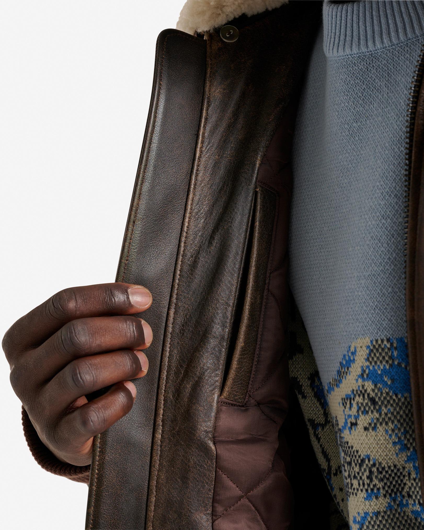 Take flight in this timeless classic. Handcrafted in Toronto, our vintage-inspired Leather Aviator Jacket features a removable shearling collar, a cozy quilted lining and tons of convenient pockets.