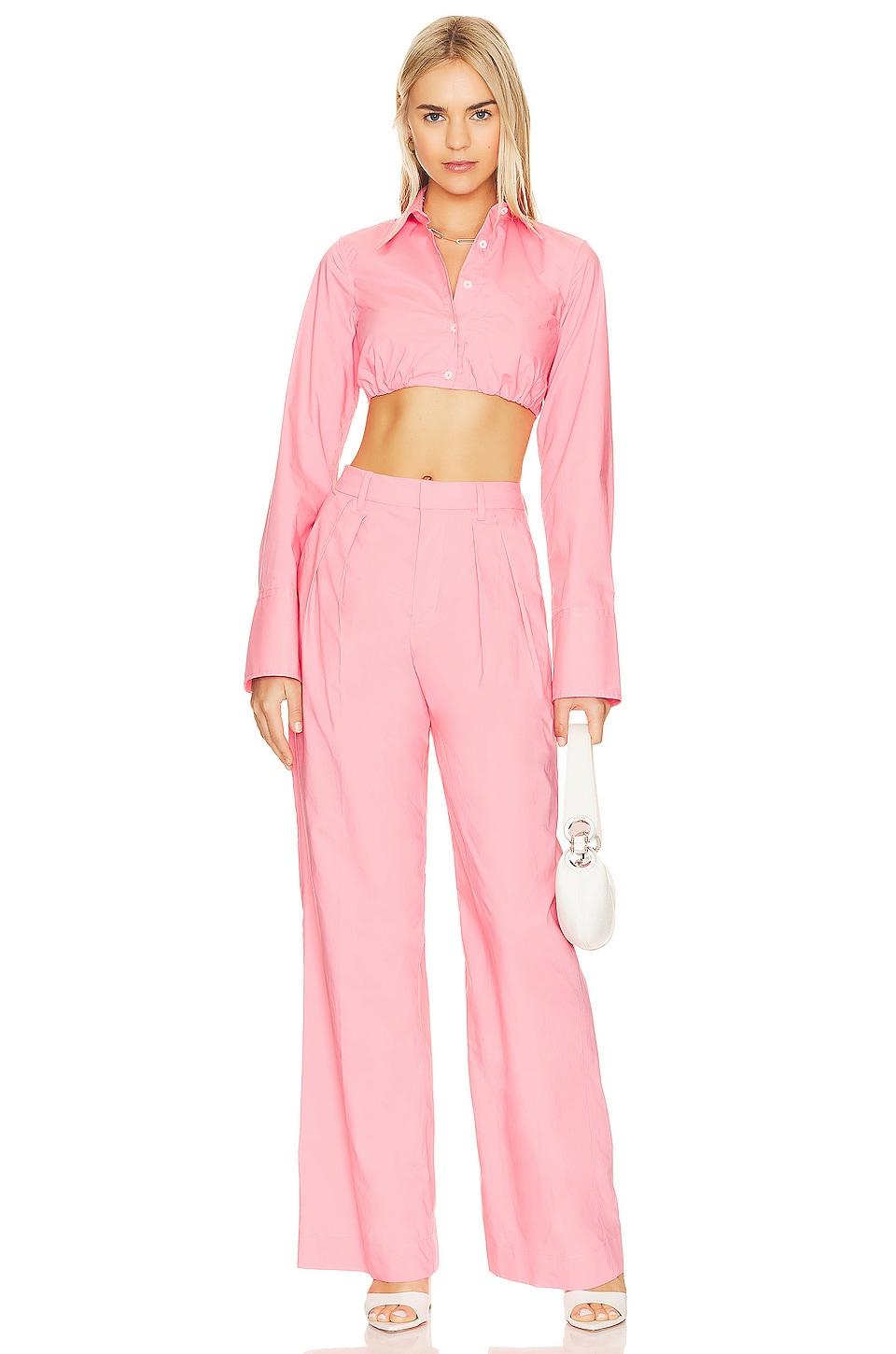 00% cotton Made in China Machine wash Zip fly with hook and bar closure Side slant pockets and rear flap pocket Drawstring detail at cuffs Crisp poplin fabric with subtle pleated detail Item not sold as a set