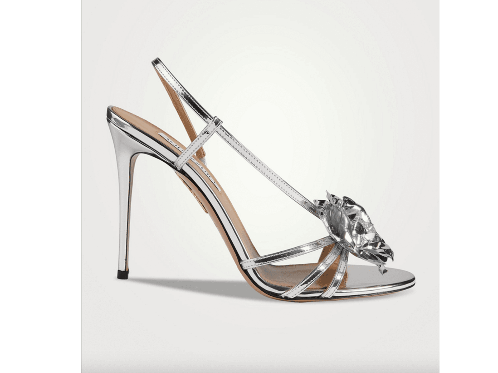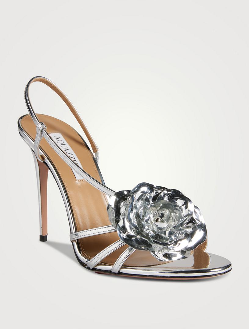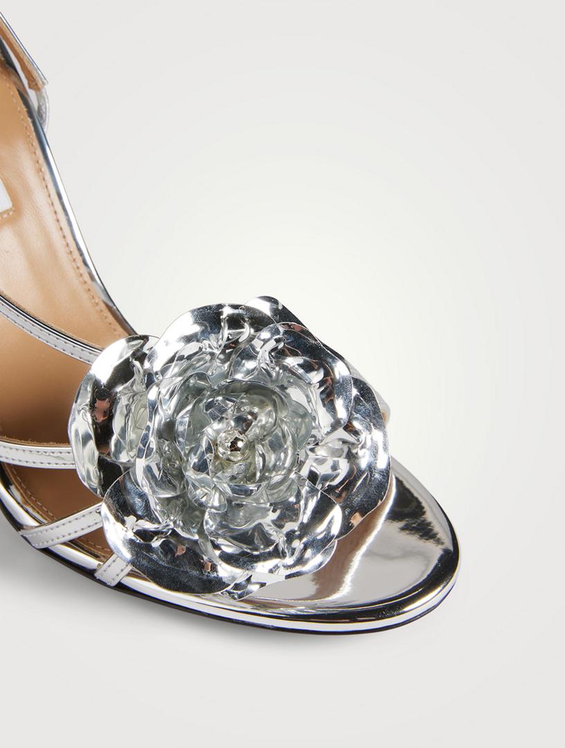 Flower power and timeless elegance combine in the Paris Rose Sandals. They're constructed from leather with a striking metallic sheen and poised on 105mm stiletto heels. The classic strappy silhouette and bold floral embellishment make them the perfect pair to complete your nighttime look.