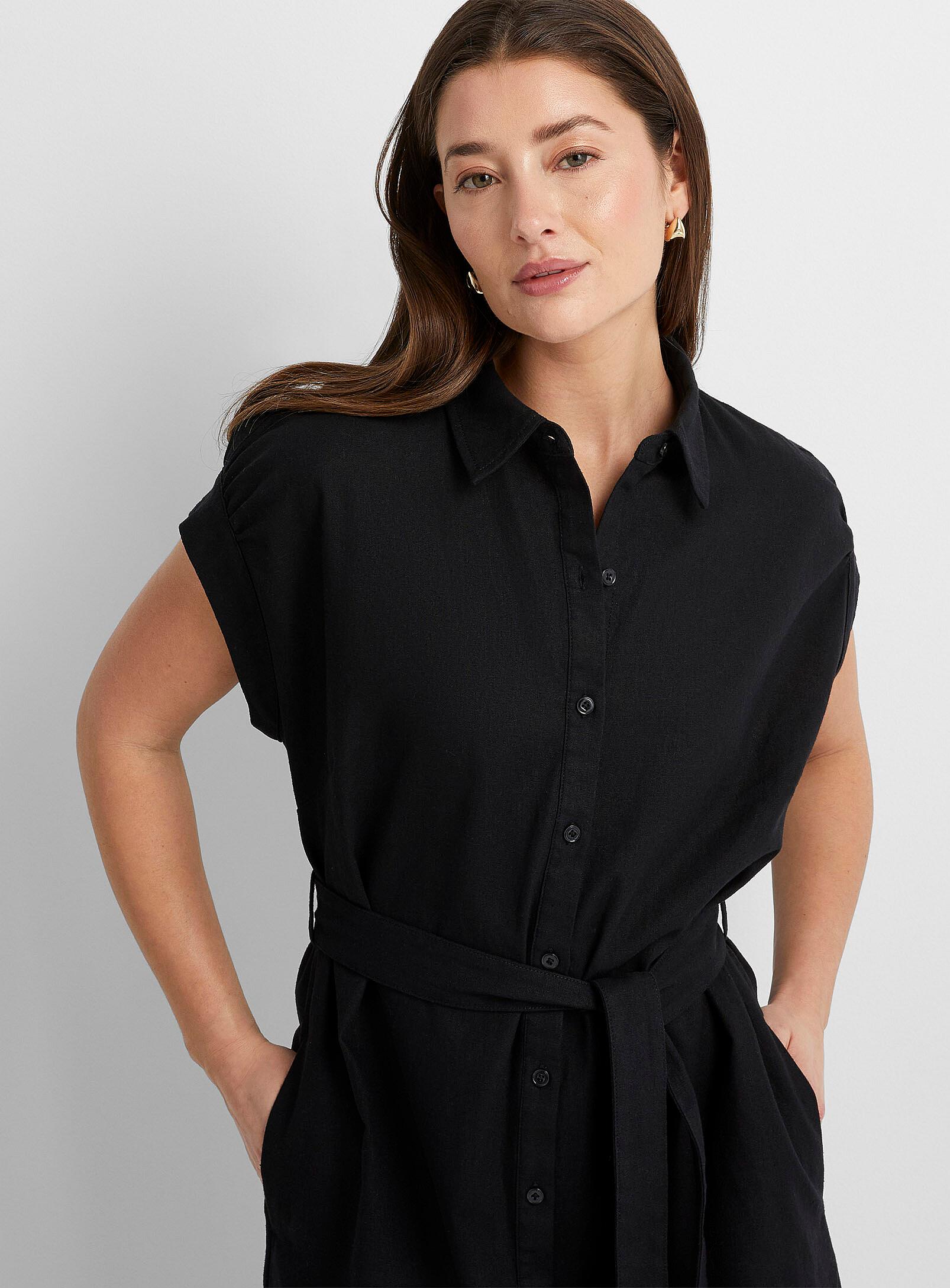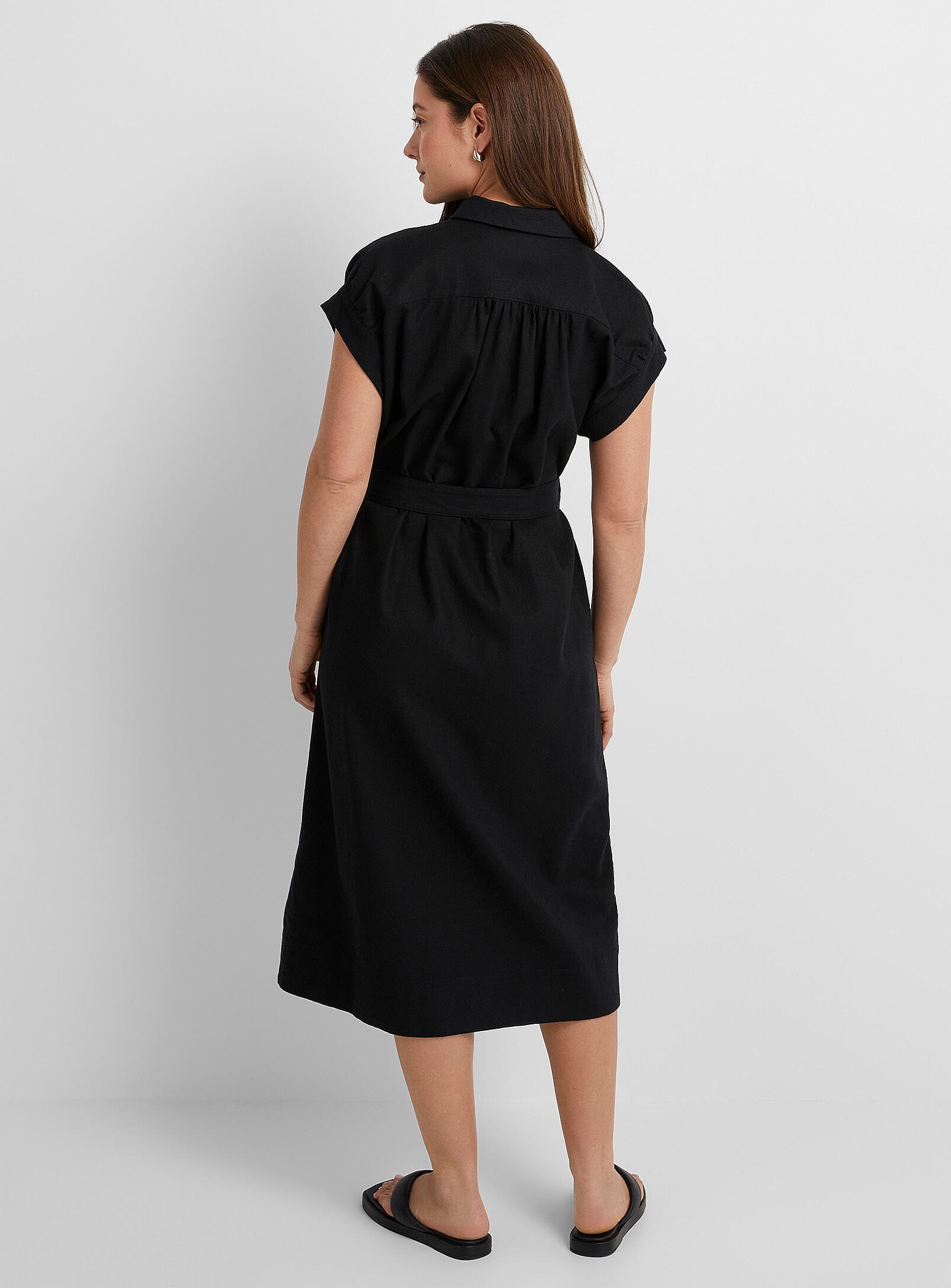 Contemporaine - Knotted belt poplin dress Contemporaine Contemporaine exclusive Fabric Structured yet lightweight organic cotton poplin Unlined Style Flared fit that can be cinched at the waist Below-the-knee length Details Matching tie belt (removable) Deep pleat under V-neck Slit side-seam pockets Hidden zip closure at the back The size of the item pictured is small Length: 41.50" (105.5 cm), from the top of the shoulder