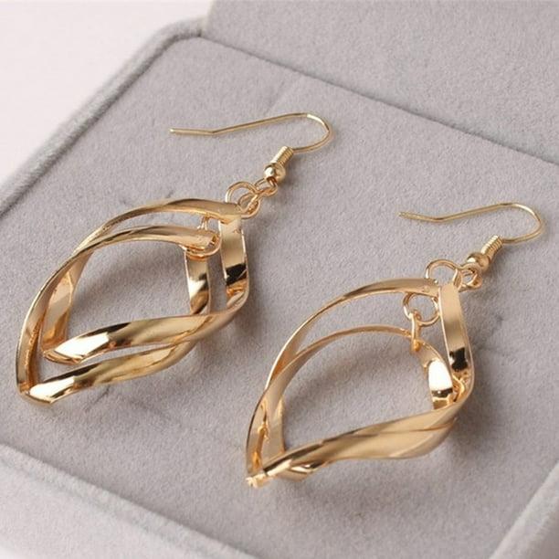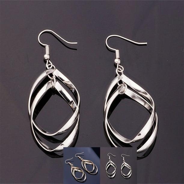 fashionhome 1 Pair Punk Twist Rhombus Hollow Leaf Big Dangle Earrings Women Girls Wedding Jewelry Drop Earrings