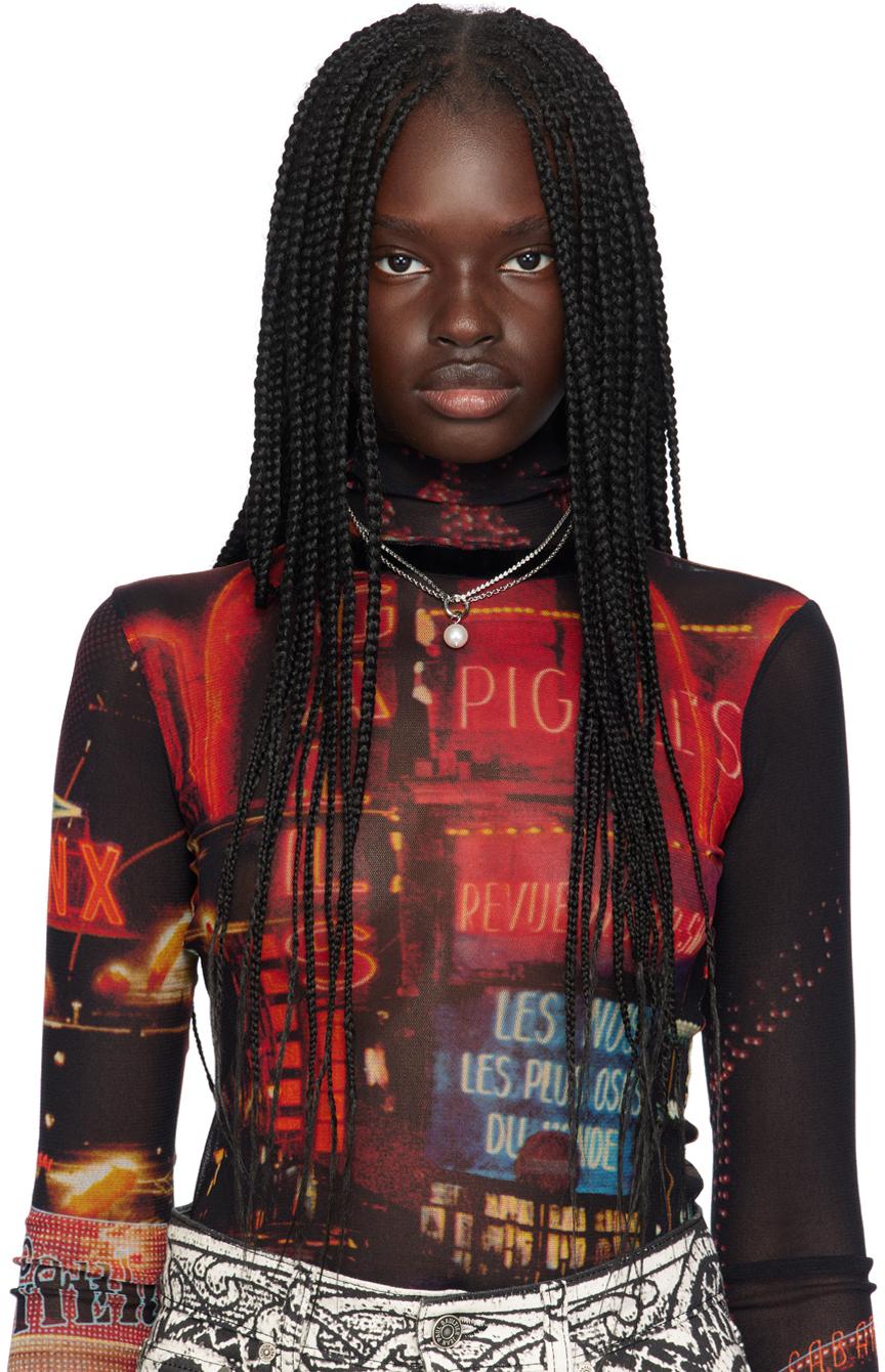 Handcrafted tiered fine cable- and cup-chain necklace in palladium-plated brass. · Crystals at length · Pearl pendant at drop · Logo plaque at spring-ring fastening · L15 Supplier color: Palladium