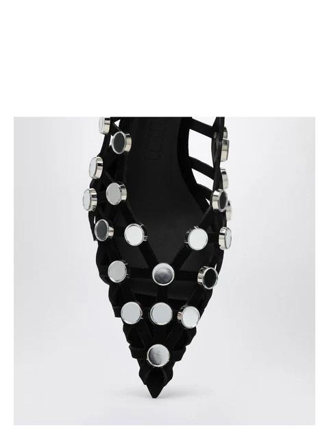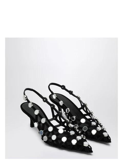 The BLACK GRID SLINGBACK brings a touch of elegance with a sleek design that harmonizes style and sophistication. Crafted from fine leather, these slingbacks offer a distinctive pointed toe and a unique strappy upper accented with small mirrors. Perfect for those who appreciate understated elegance in their footwear collection.