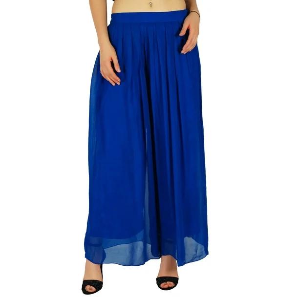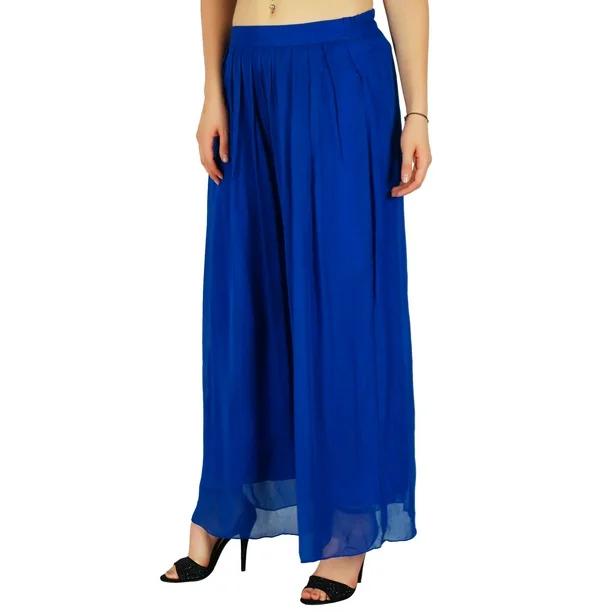 Bimba Women Long Flared Wide Leg Palazzo Pleated Skirt Style Pants