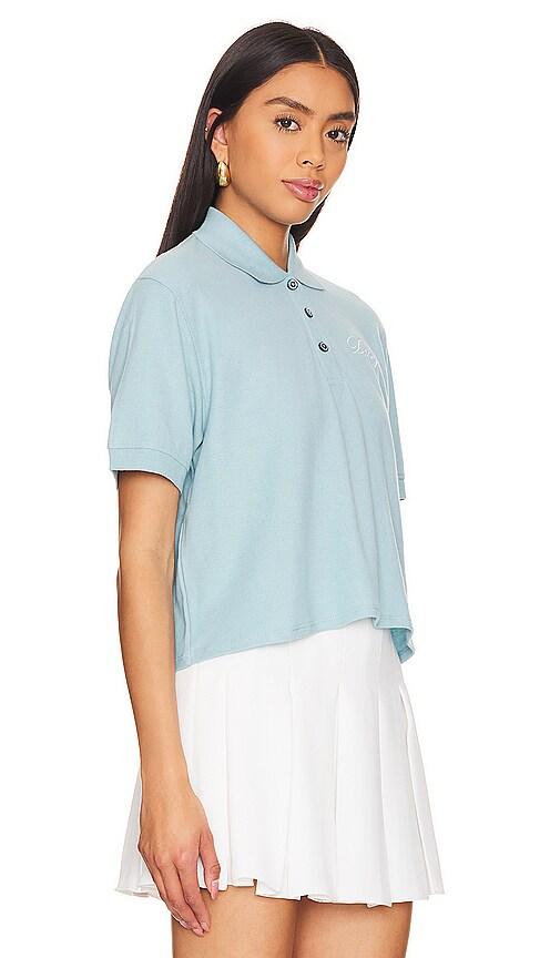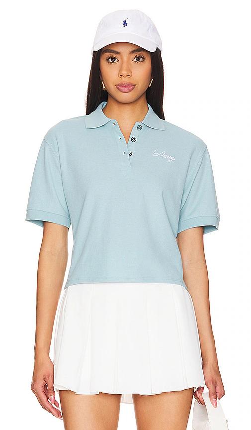 DANZY Cropped Polo Top in Baby Blue. Size XL. 100% cotton. Made in USA. Machine wash. Partial front button closure. Embroidered breast logo. Pique fabric. DNZY-WS4. CROPPEDPOLO. Drawing inspiration from childhood summers in the mid-west, founder and designer Marshall Danzy Taulbert's intentions are to provide Comfortably Chic pieces with a one-of-a-kind look and vintage feel that will stand the test of seasons. Created as an homage to his family, and in particular his great-great grandmother Mama Danzy, who was known for her grand hand-stitched quilts in the deep south during the early 1900's, each garment is meticulously designed, alongside hand distressing and tie dyeing for a unique, 'can't find anywhere else' piece.