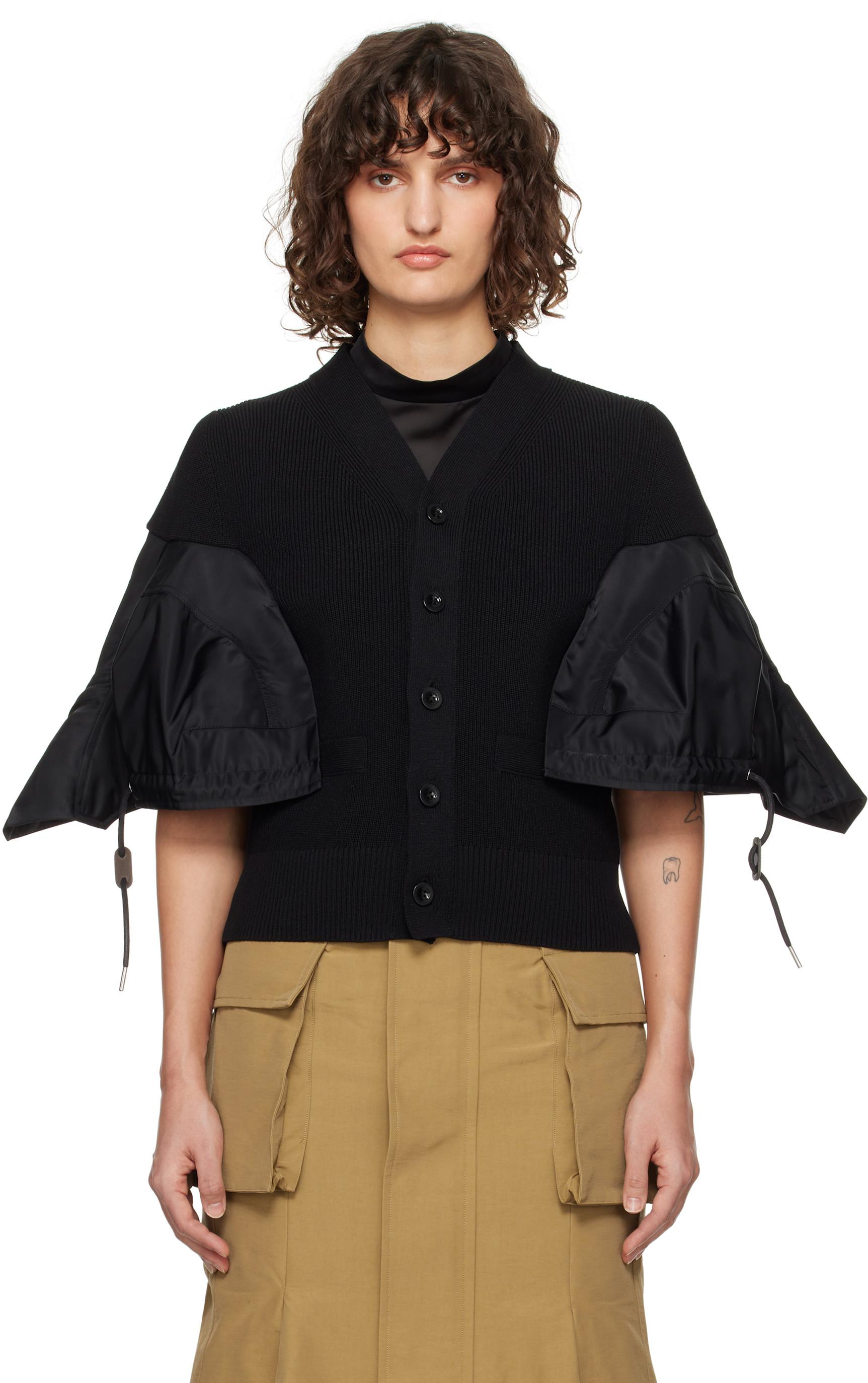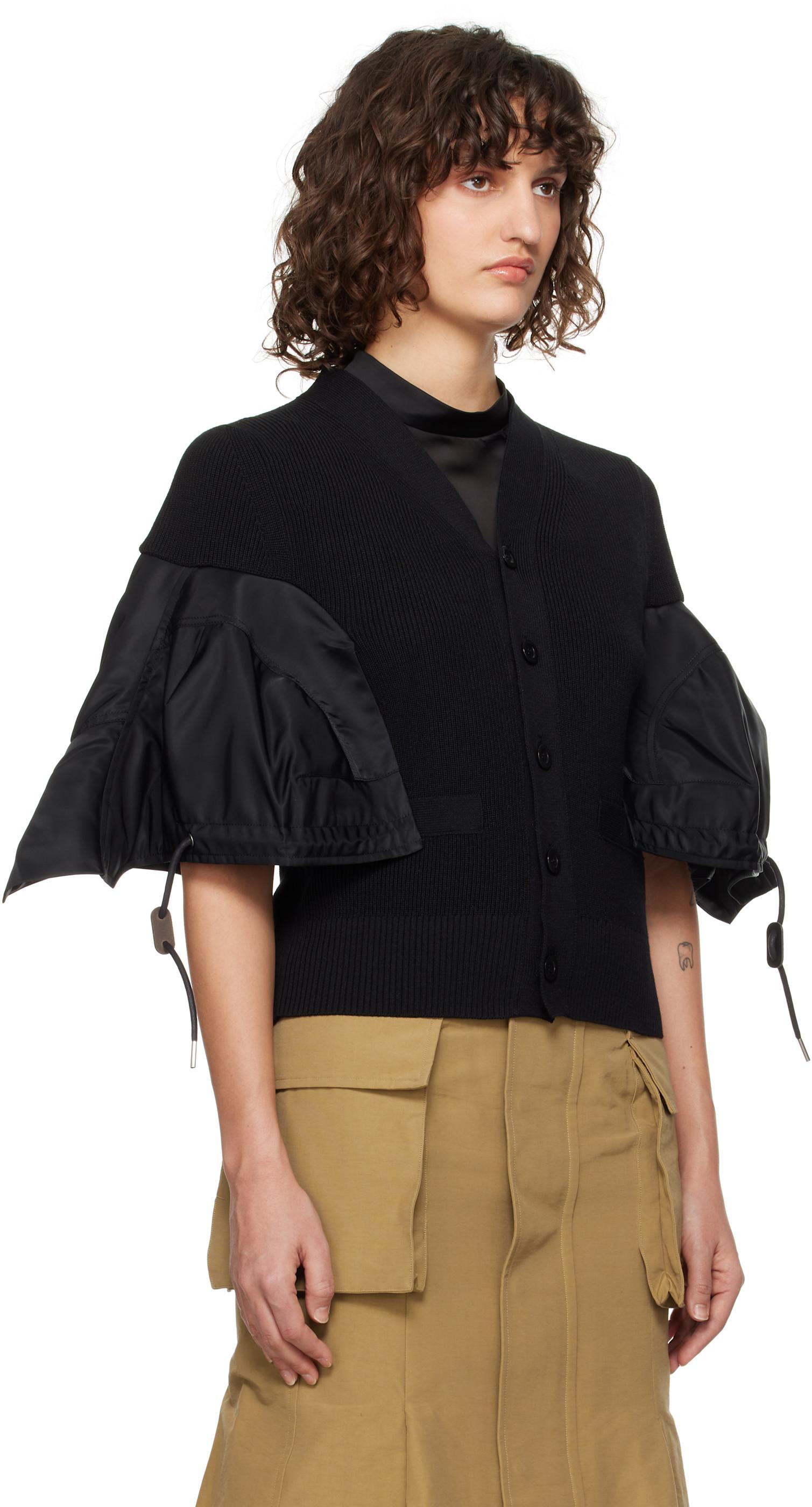 sacai Black Nylon Twill & Knit Cardigan