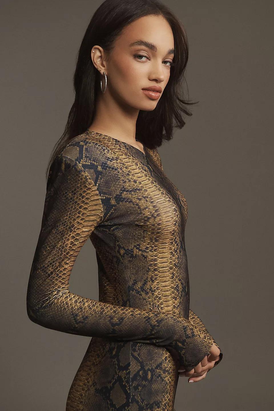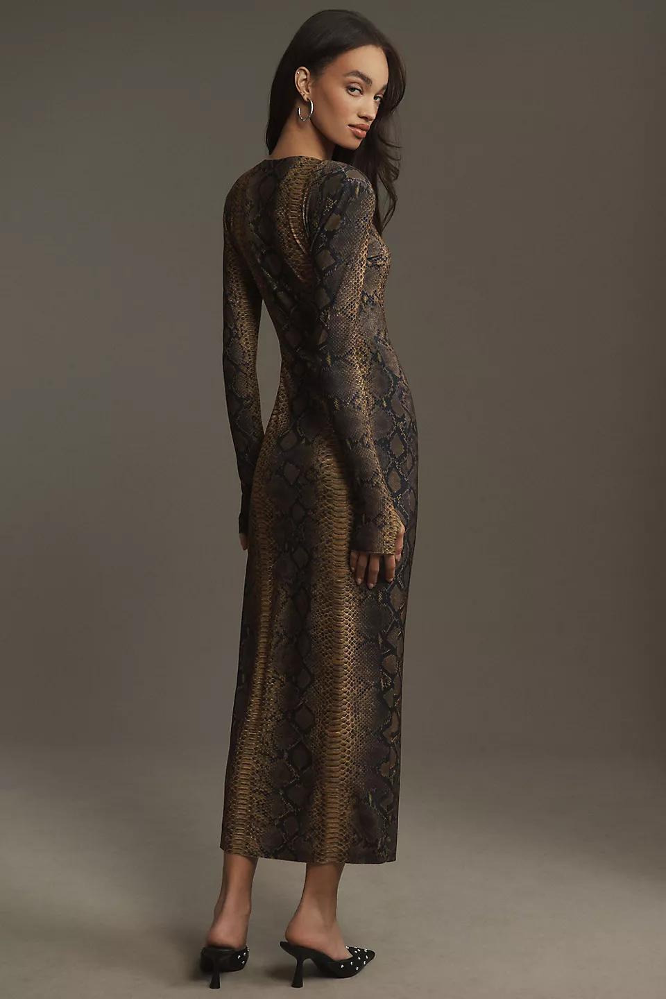 Norma Kamali Long-Sleeve Shoulder Pad Side-Slit Midi Dress