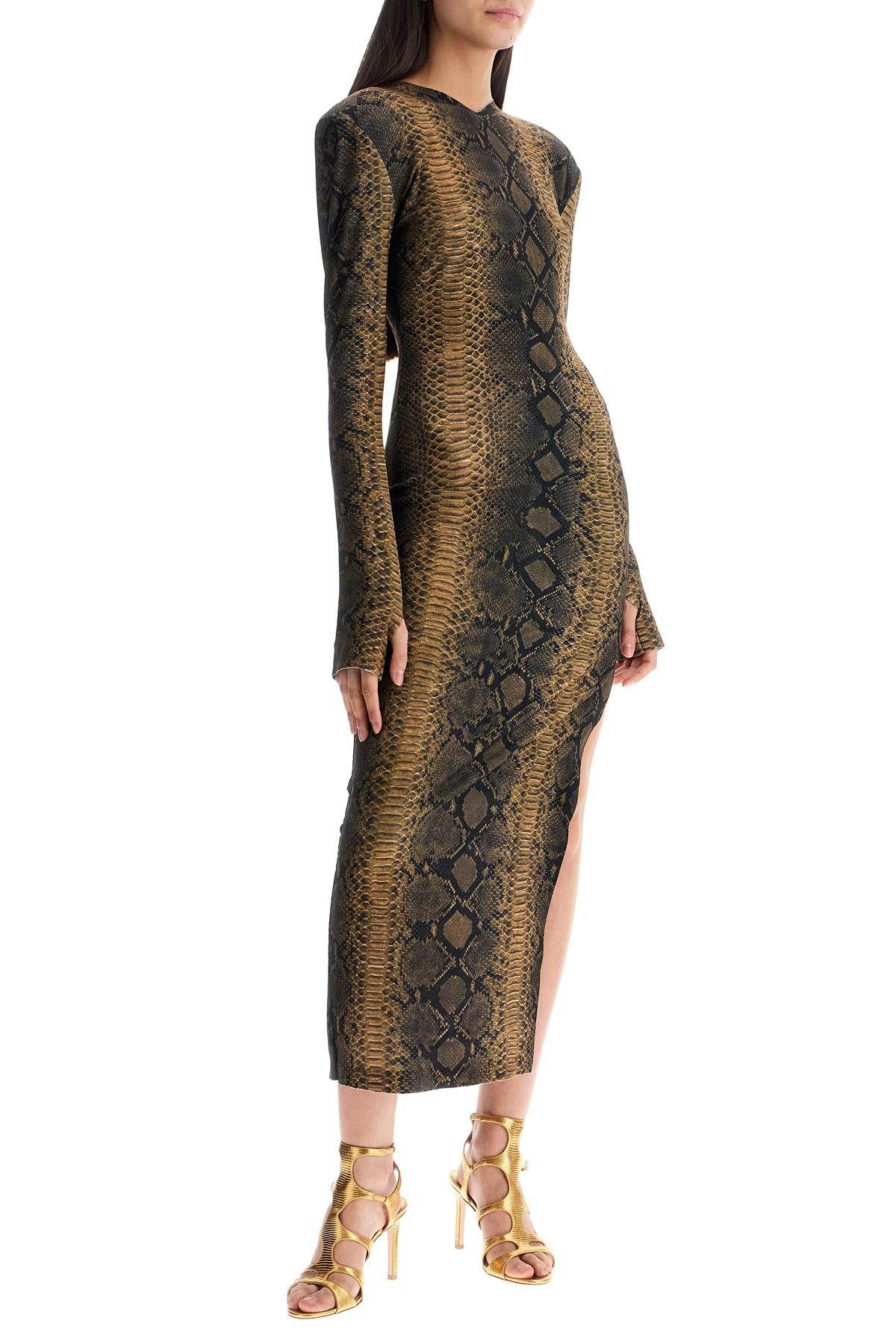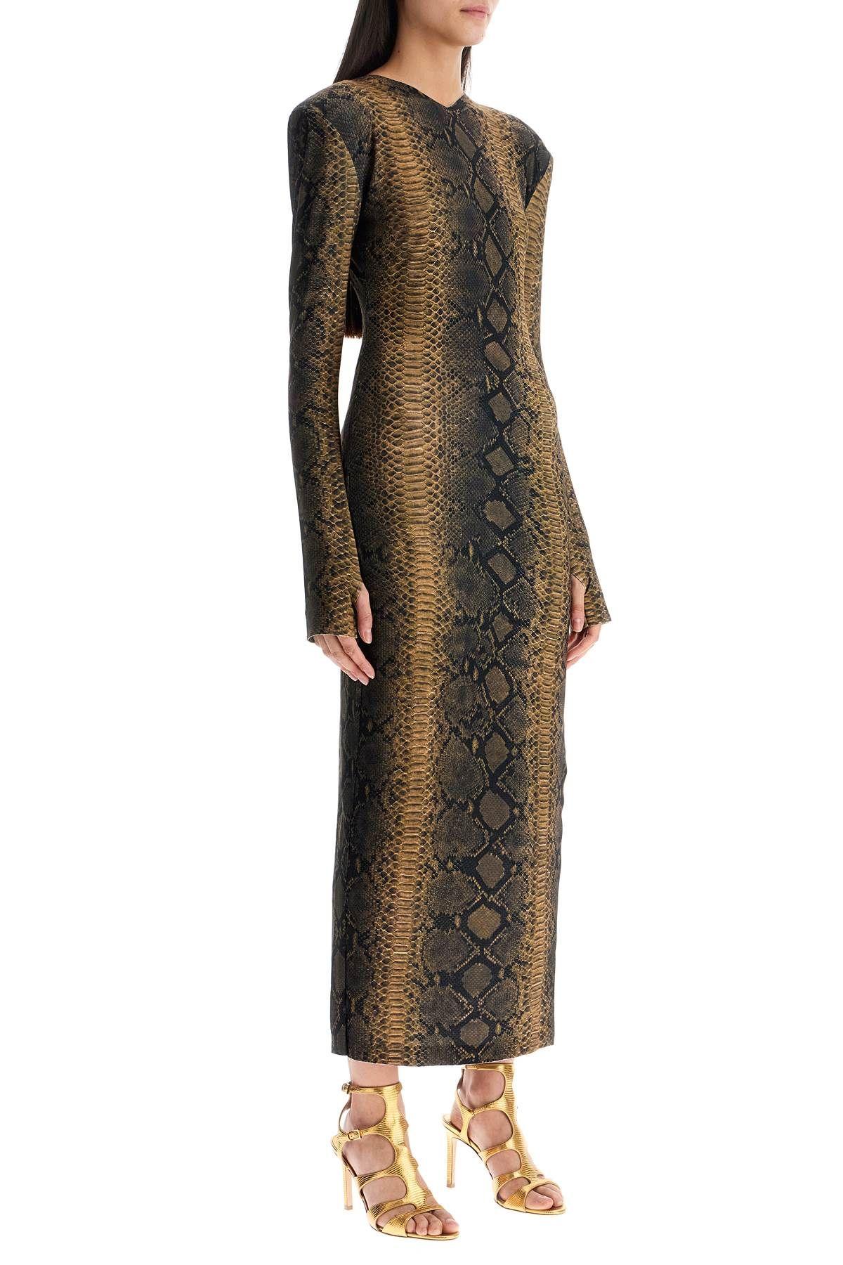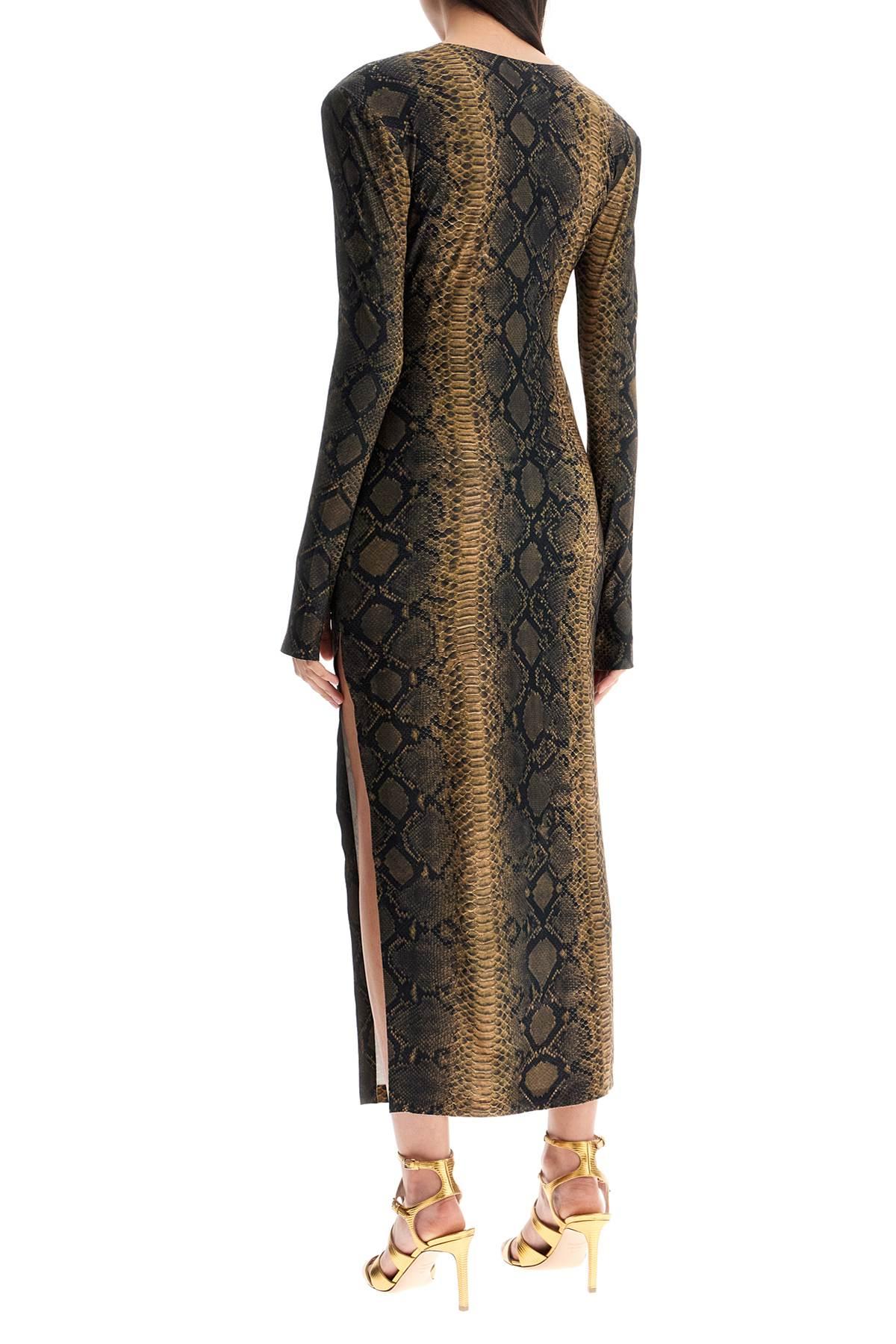 Norma Kamali Brown Slim Fit Long Python Effect Dress