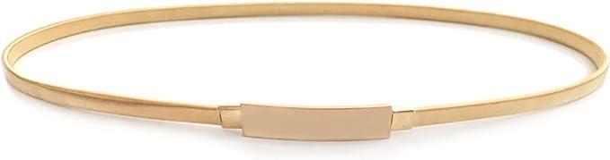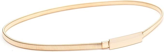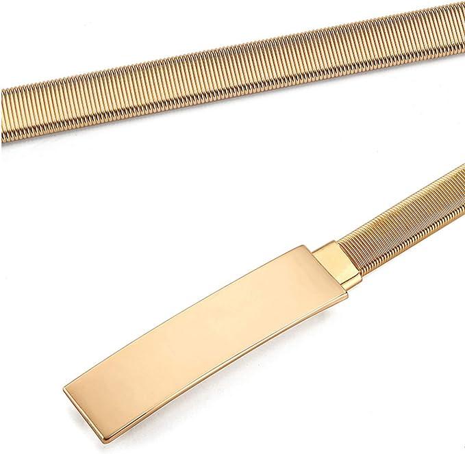 ZARSIO Women Skinny Waist Belt Metal Elastic Chain Belt Dress Belt, Gold