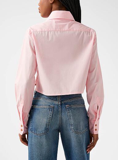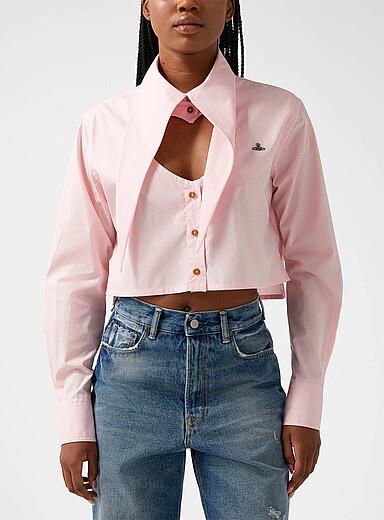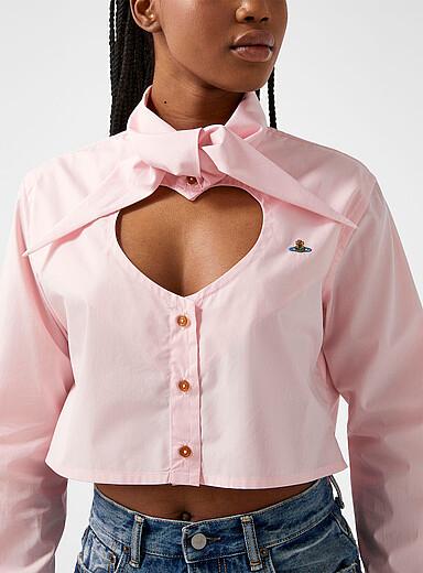 A romantic, self-assured charm emanates from this shirt with a heart cut-out at the chest and a bold pointed collar that can also be knotted. 100% cotton poplin Cropped style Bold pointed collar that can be knotted Full-length buttons, buttoned cuffs