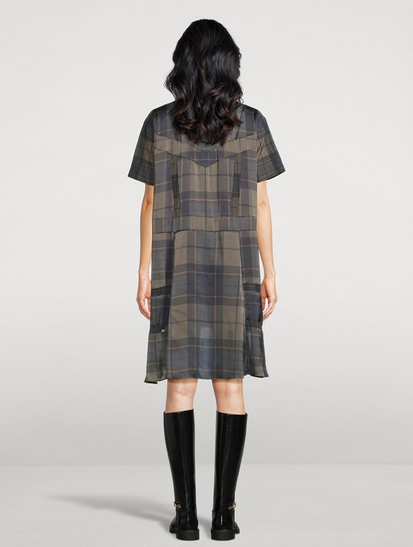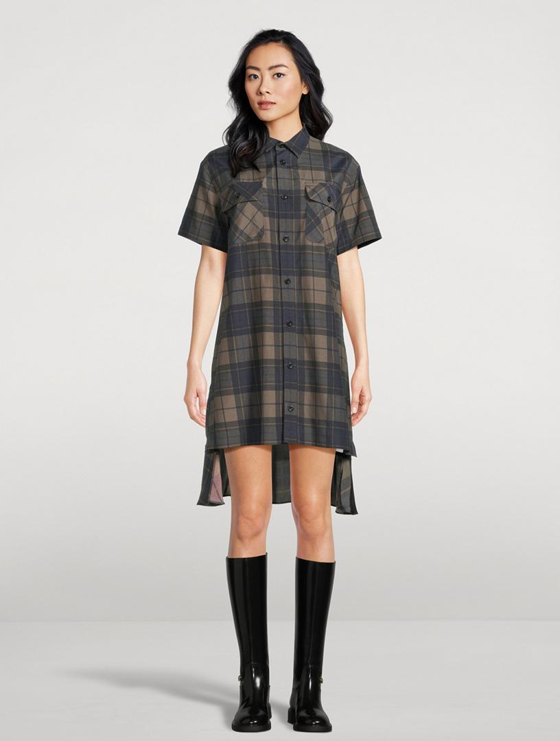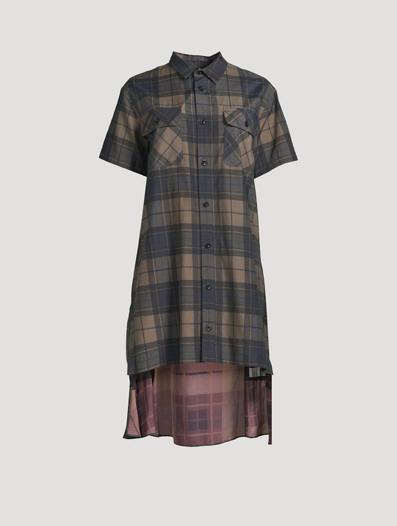 A classic plaid motif adorns this short-sleeve shirt dress. Crafted from a silky blend, it has a relaxed silhouete with a high-low hem, pointed collar, and patch flap pockets at the chest. 55% Rayon, 45% Cotton; Lining: 100% Polyester; Trim: 100% Polyester Point collar Short-sleeve Button closure Made in Japan