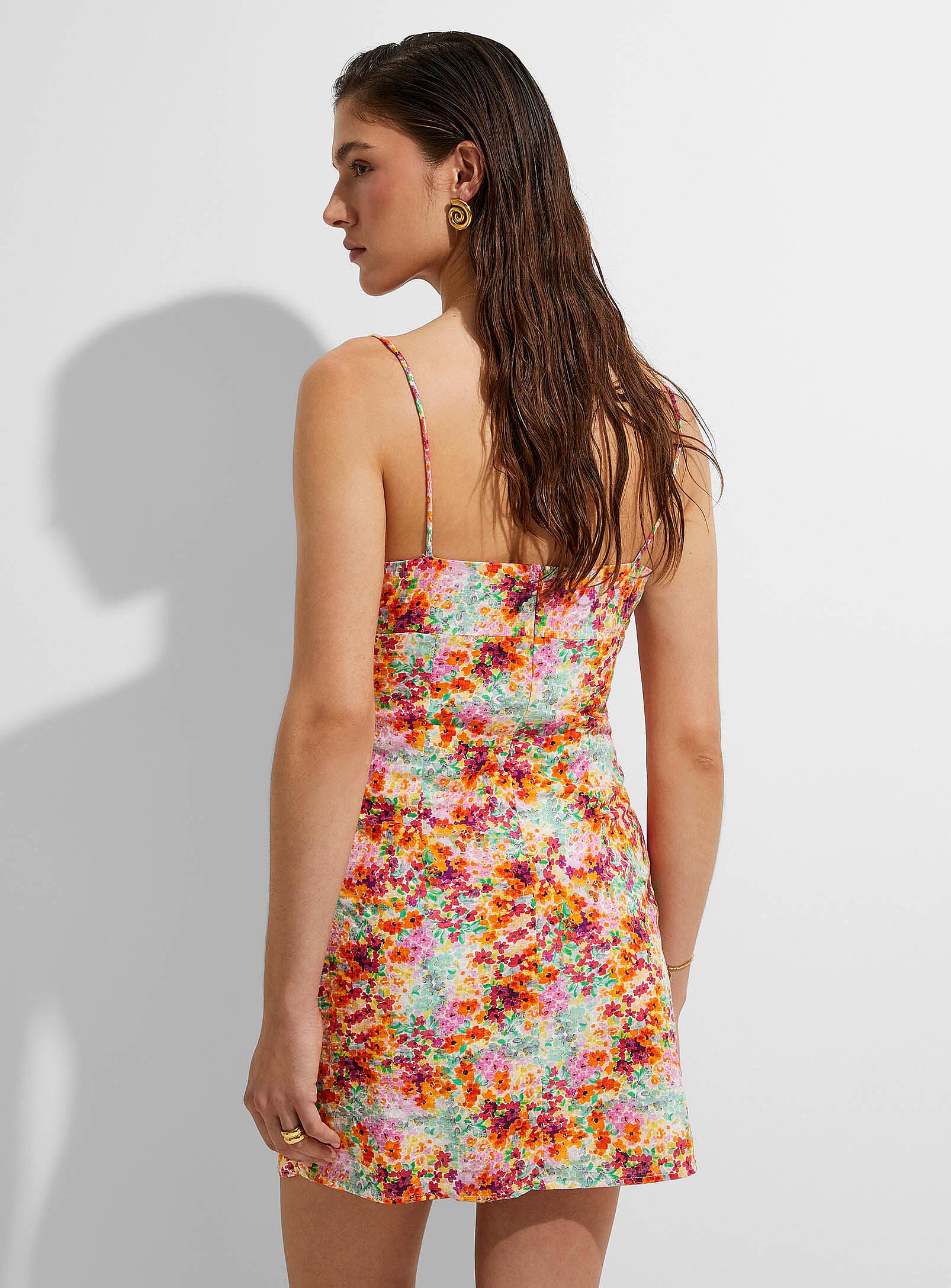 Women > Beach & Swimwearbr>Rhythm - Painterly field mini dress Rhythmbr>ul>li>Rhythm at Simons/li>li>A profusion of flowers painted in vibrant shades of red, pink and orange!/li>li>Cotton-blend fabric/li>li>Zip closure/li>li>Drawstring spaghetti straps to tie in front/li>/ul>br>br>The size of the item pictured is small