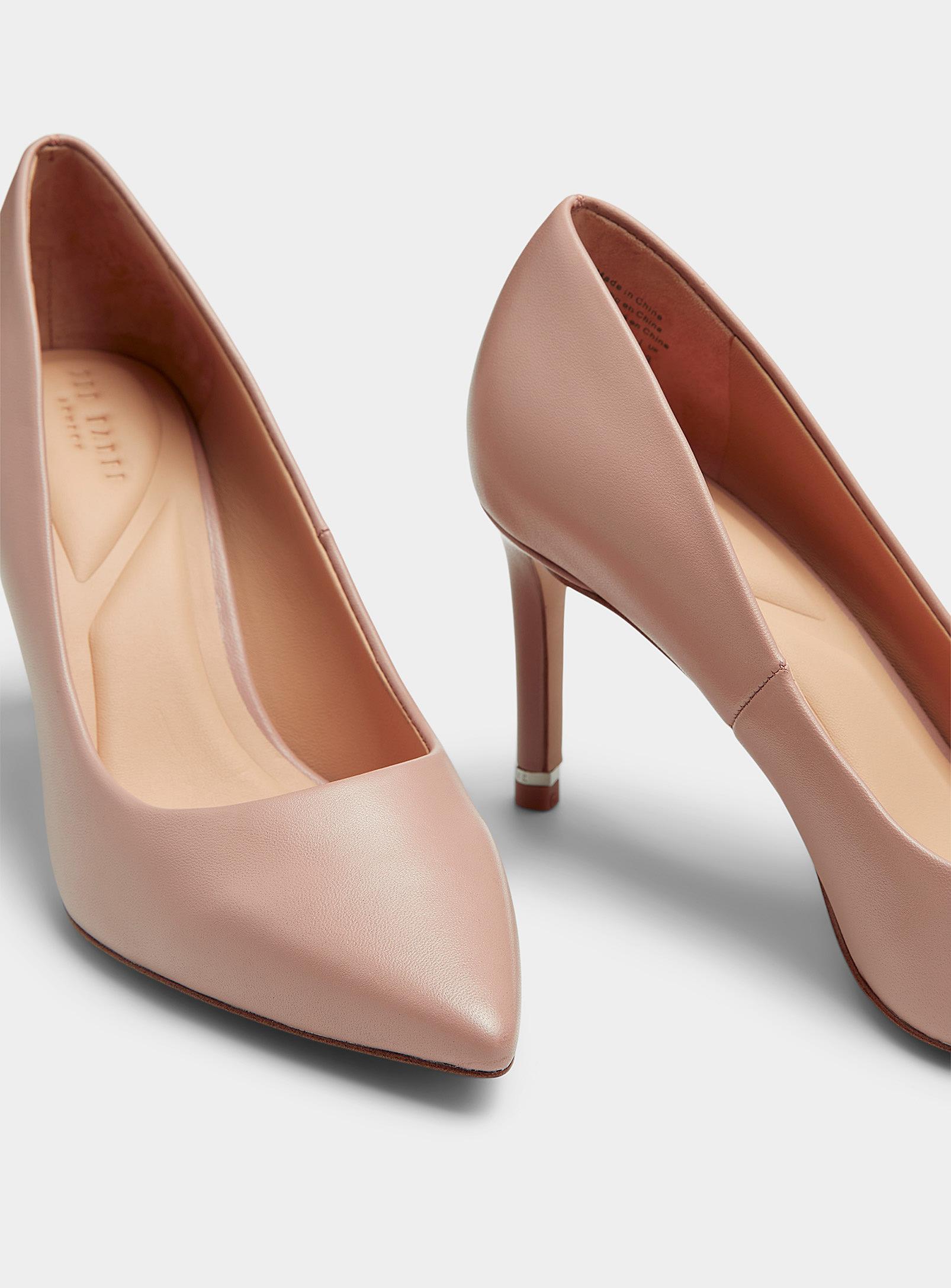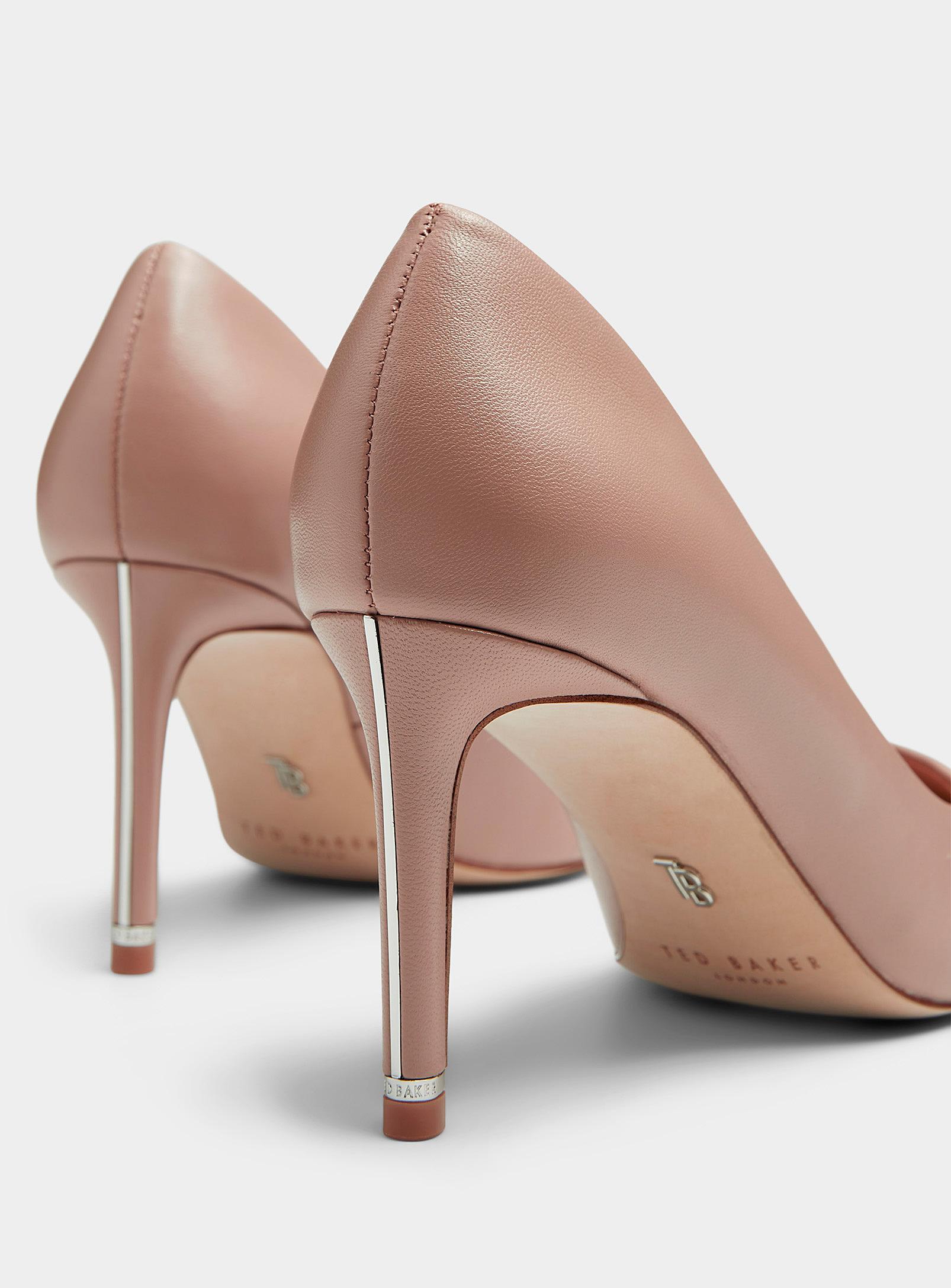 Ted Baker - Charlotte leather pointed pumps Women Ted Baker Ted Baker from London at Simons A minimalist silhouette featuring a shimmering silver tab at the heel to add a touch of elegance to your outfit Genuine leather upper Padded leather footbed withembossed logo Leather outsole with non-slip rubber heel insert Heel height: 3" (8 cm)