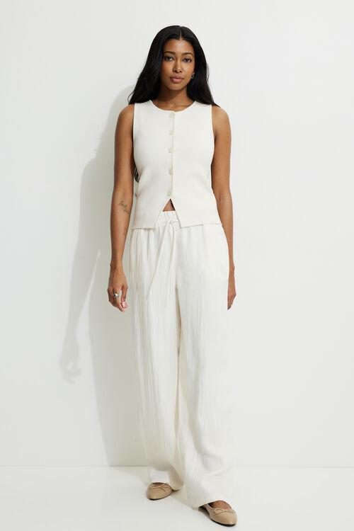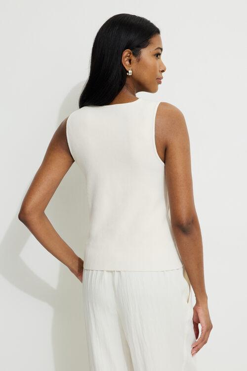 This knit vest is designed to have a fitted silhouette. Wear it with jeans for a casual look. Features - Crewneck - Button closure - Front vent Size & Fit - Fitted - Stretch fabric - Model is wearing size XS Materials & Care - 72% viscose, 28% polybutylene terephthalate - Hand wash, cold - Imported