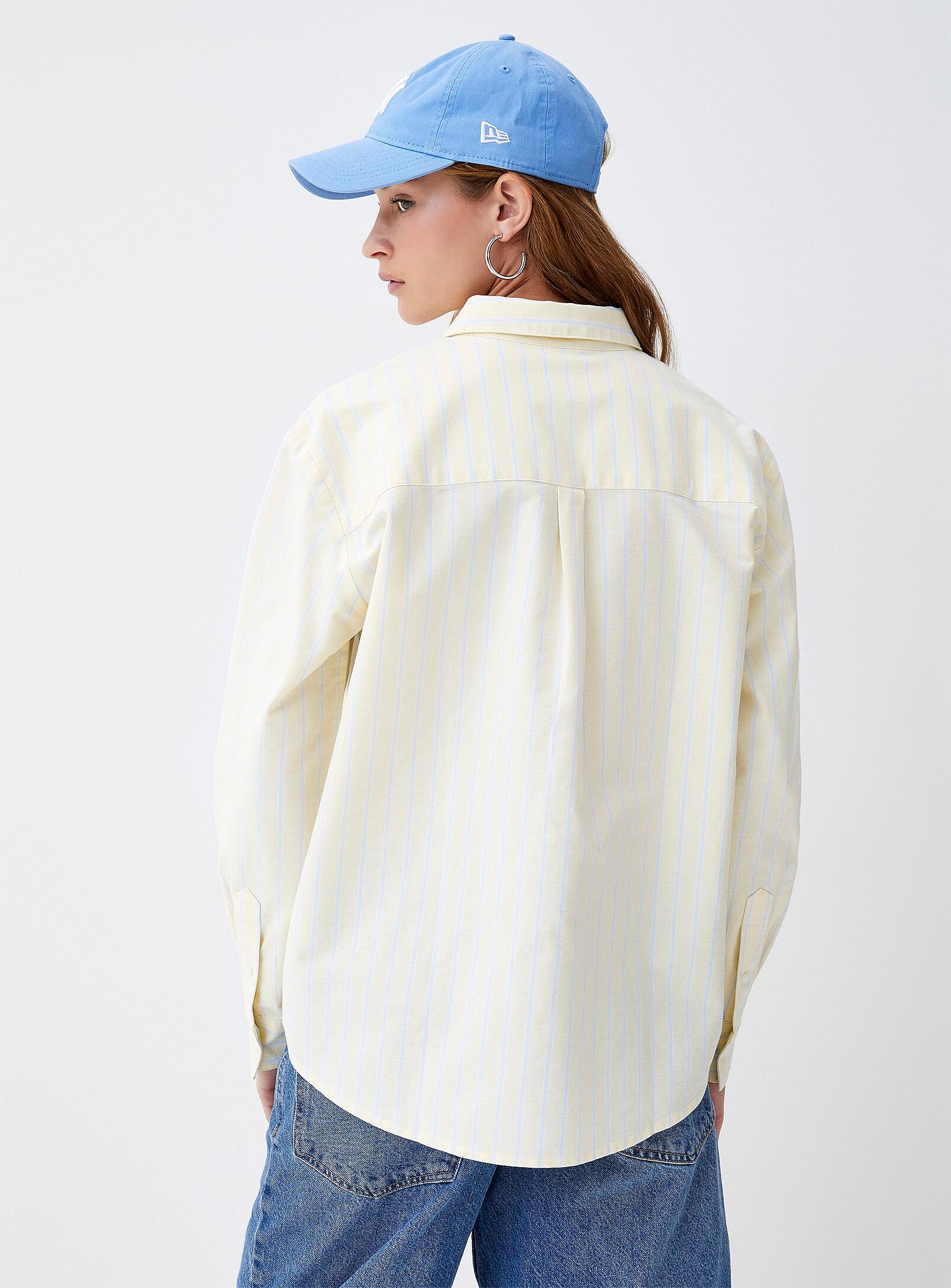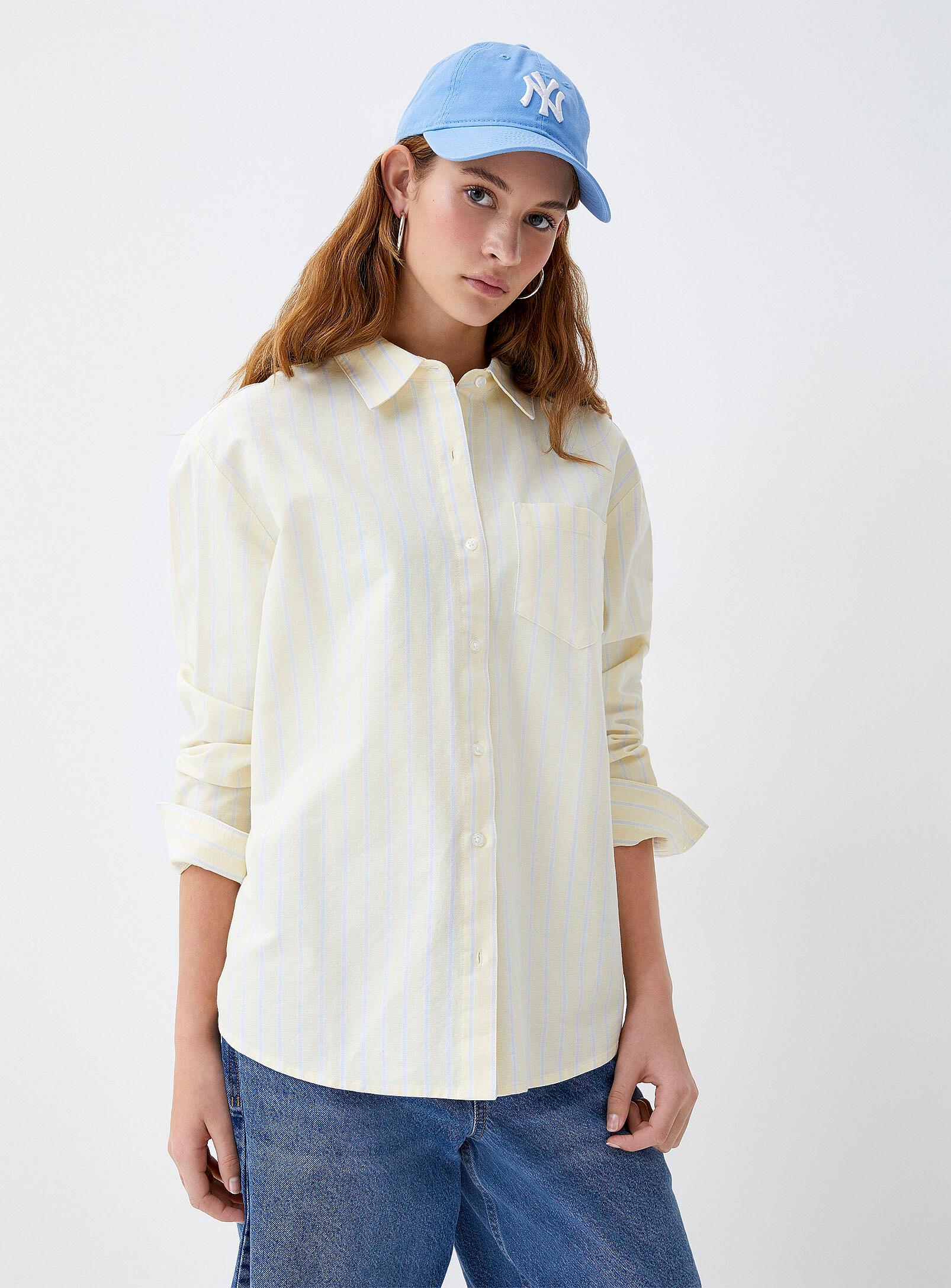 Women > Blouses & Shirtsbr>Twik - Striped loose oxford shirt Twikbr>b>Twik by Simons: an exclusive designed in Canada/b>br>ul>li>Patch pocket on the chest/li>li>Organic cotton piqué fabric/li>li>Buttons down the front/li>li>Rounded hem/li>li>Loose fit/li>/ul>br>br>The size of the item pictured is small