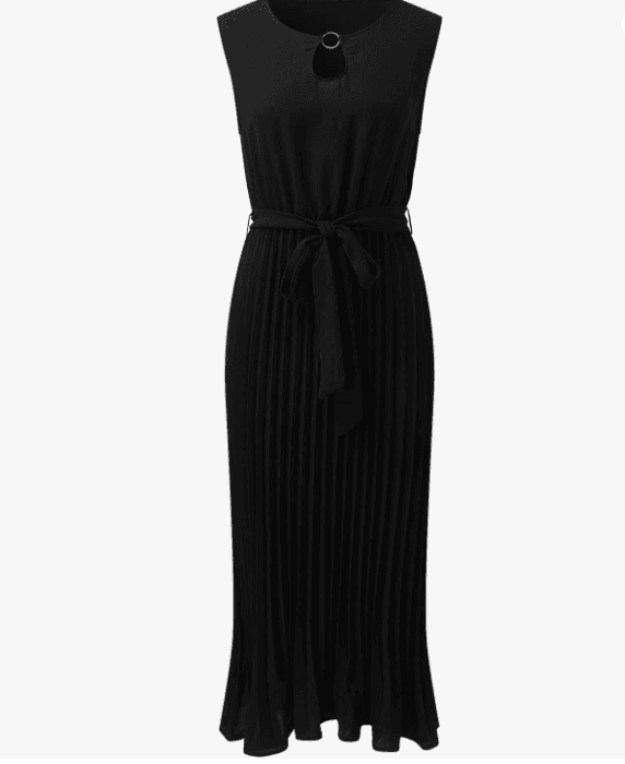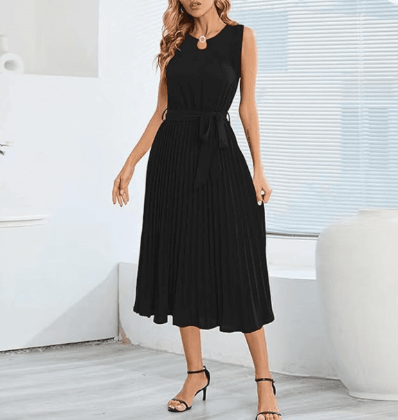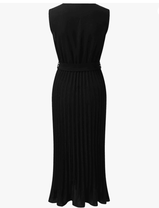 Midi Dresses for Women 2023 Summer Plus Size Black V Neck Pleated Dress Casual Sleeveless Beach Dress