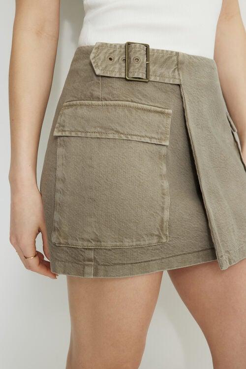 This mini skirt is made from lightweight non-stretch denim, designed for a fitted silhouette. Wear it with a tank top for everyday wear. Features - Wrap construction - Pin-buckle fastening - Flap pocket at sides Size & Fit - Fitted Materials & Care - 85% cotton, 15% recycled cotton.