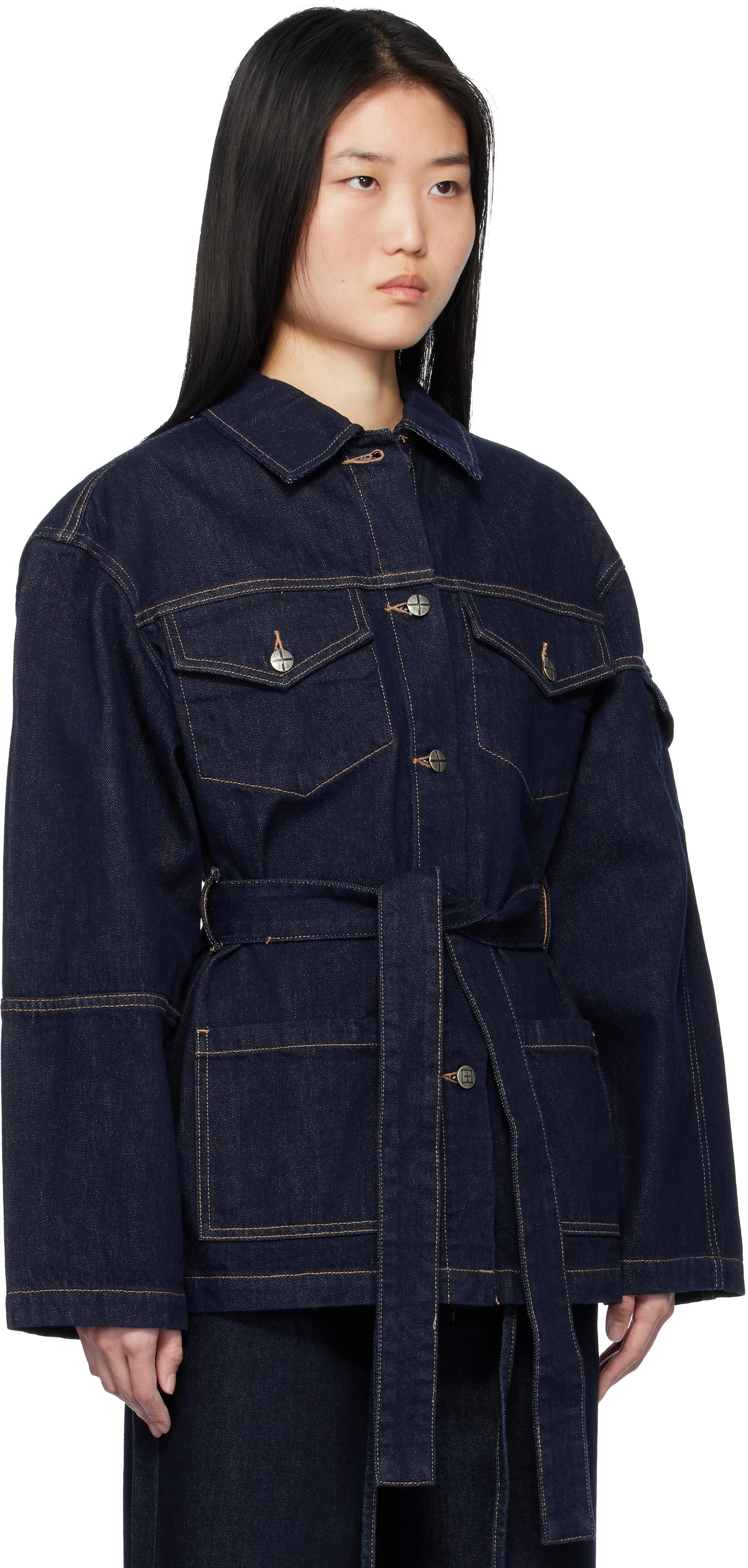 Oversized non-stretch denim jacket. · Paneled construction · Spread collar · Button closure · Flap and patch pockets · Detachable self-tie belt · Flap pocket at sleeve · Logo graphic embroidered at back hem · Logo-engraved antiqued silver-tone hardware · Contrast stitching in tan Supplier color: Denim
