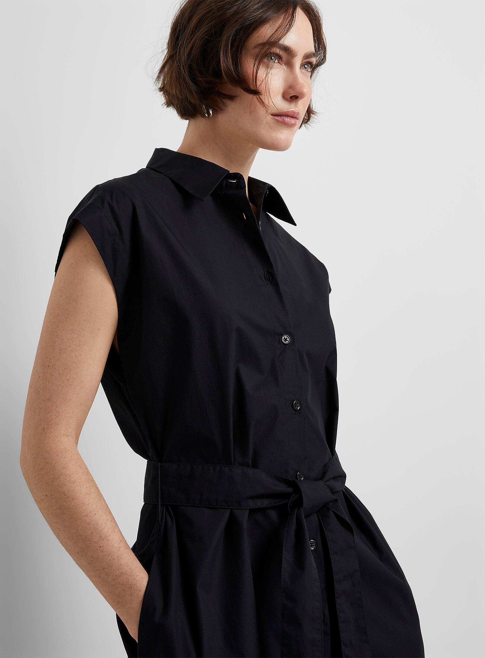 Contemporaine - Belted cap-sleeve poplin dress (Women, Black, X-SMALL)