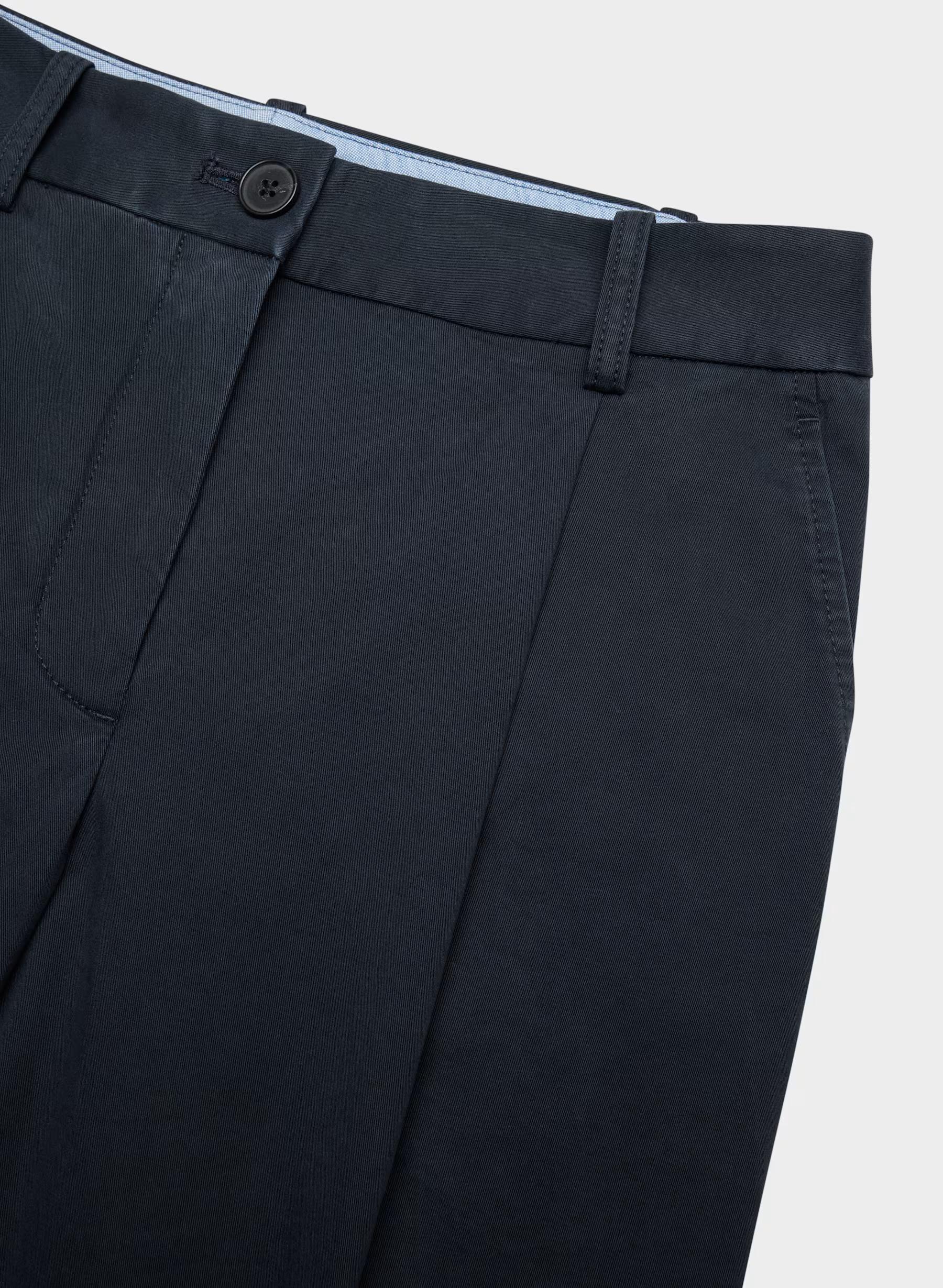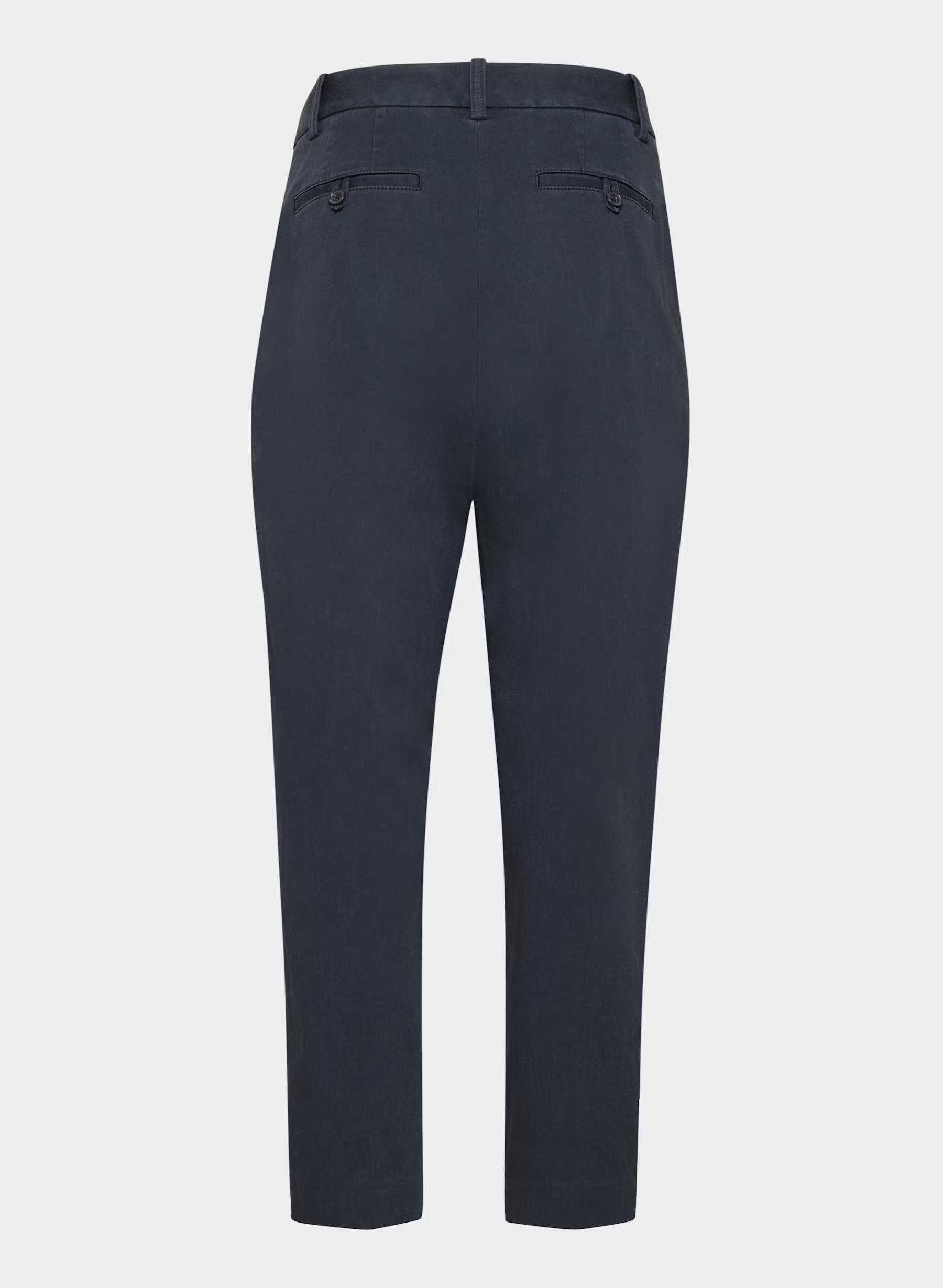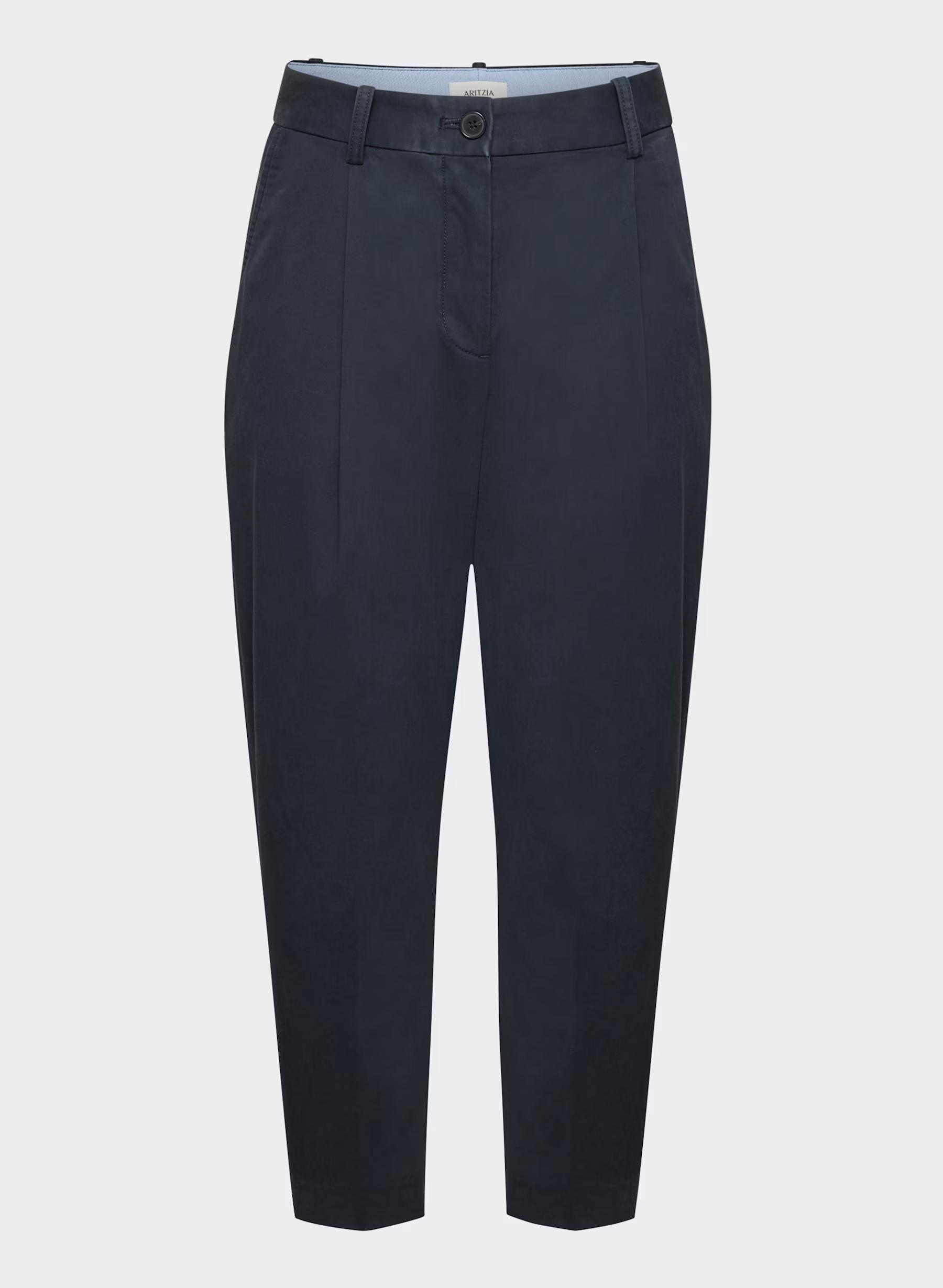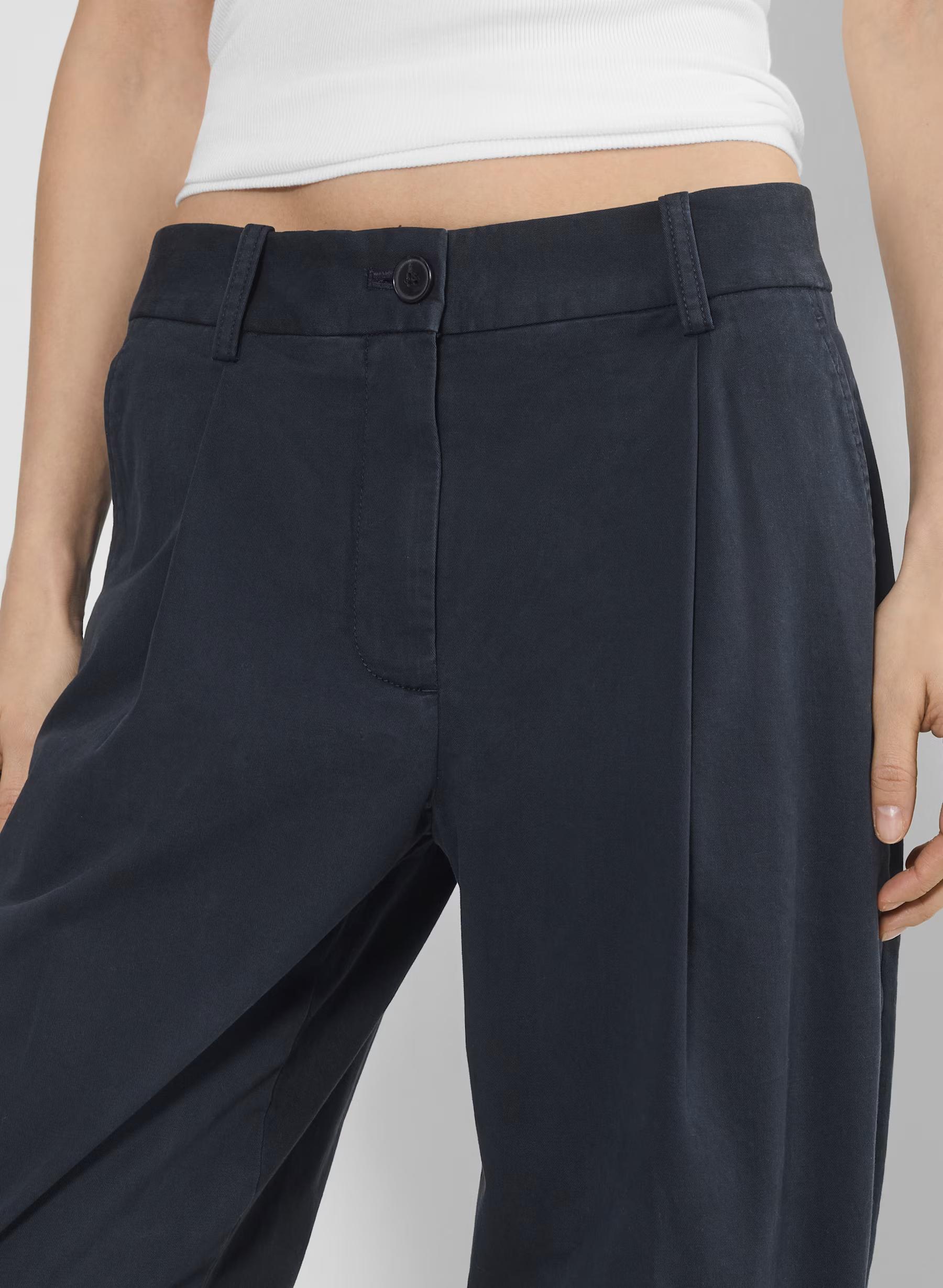 These are pleated mid-rise trousers with slash pockets and a relaxed fit. They’re made with Aritzia’s Chino — stretch cotton twill with a peachy feel. This fabric is easy-care and perfect for year-round wear. It’s made with 97% regenerative cotton.