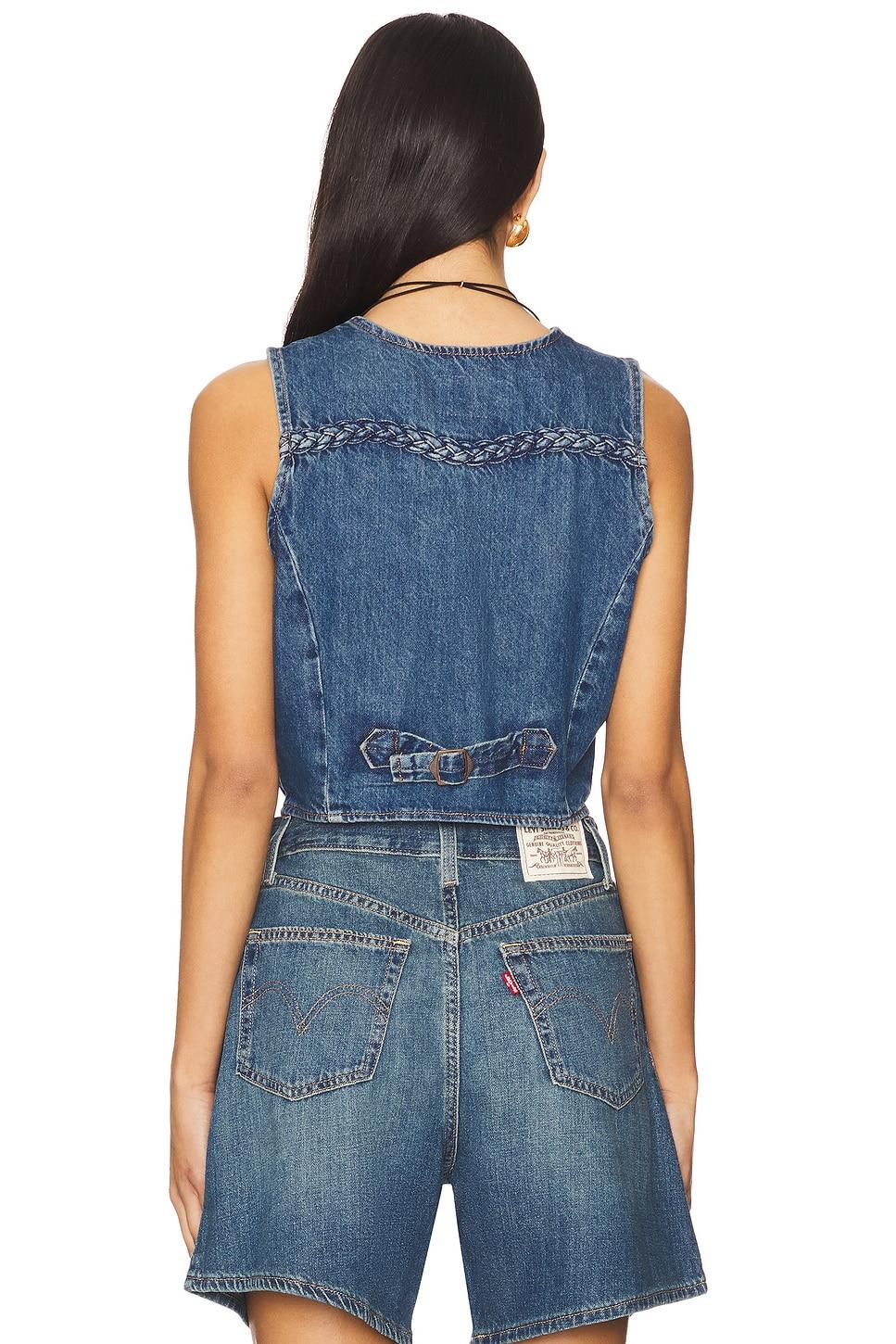 LEVI'S Braided Vest in Blue. Size S, XL, XS. 100% cotton. Made in Sri Lanka. Machine wash. Front button closure. Front welt pockets and adjustable back strap. Midweight denim fabric. LEIV-WO92. 001WQ-0000. Levi Strauss & Co., established in 1853, is a brand with a loyal, worldwide following. Their innovation with the co-invention of the blue jean was an integral part in creating their culture of self-expression and American cool that still resonates today. Each ready-to-wear design produced by the iconic label is made with special attention to craftsmanship, progress, and sustainability.