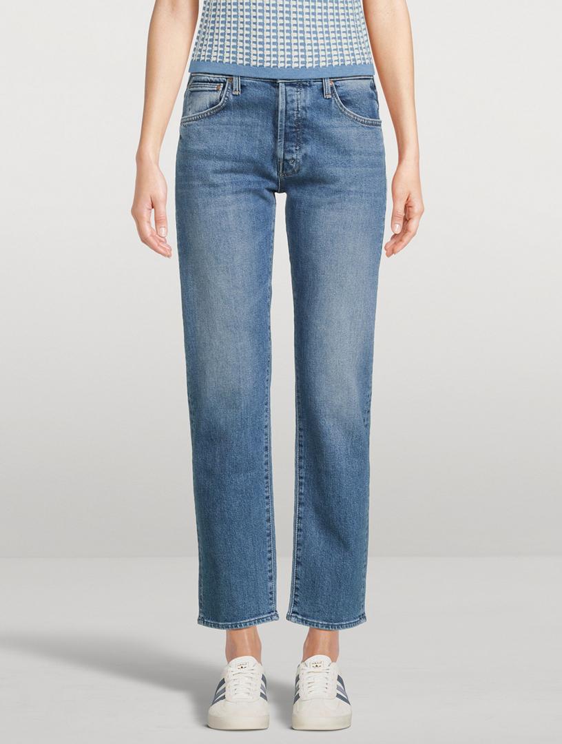 MOTHER Ce jean étroit à jambes droites a été adoptée de la gamme masculine de MOTHER et présente une taille moyenne, une braguette boutonnée, des poches arrière basses et un ourlet net. Confectionné dans un denim légèrement extensible, il présente un délavage moyen et des décolorations sur toute sa surface.